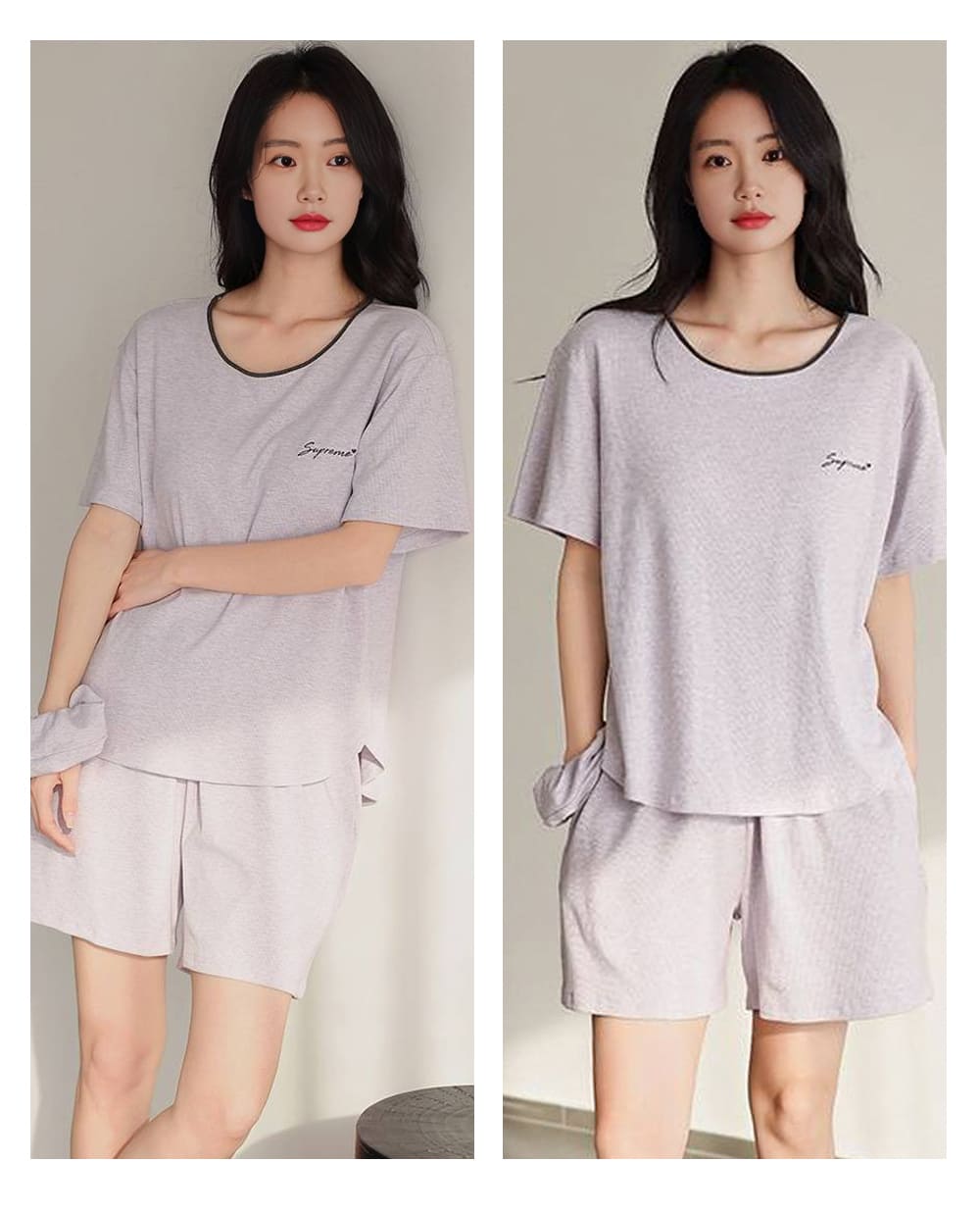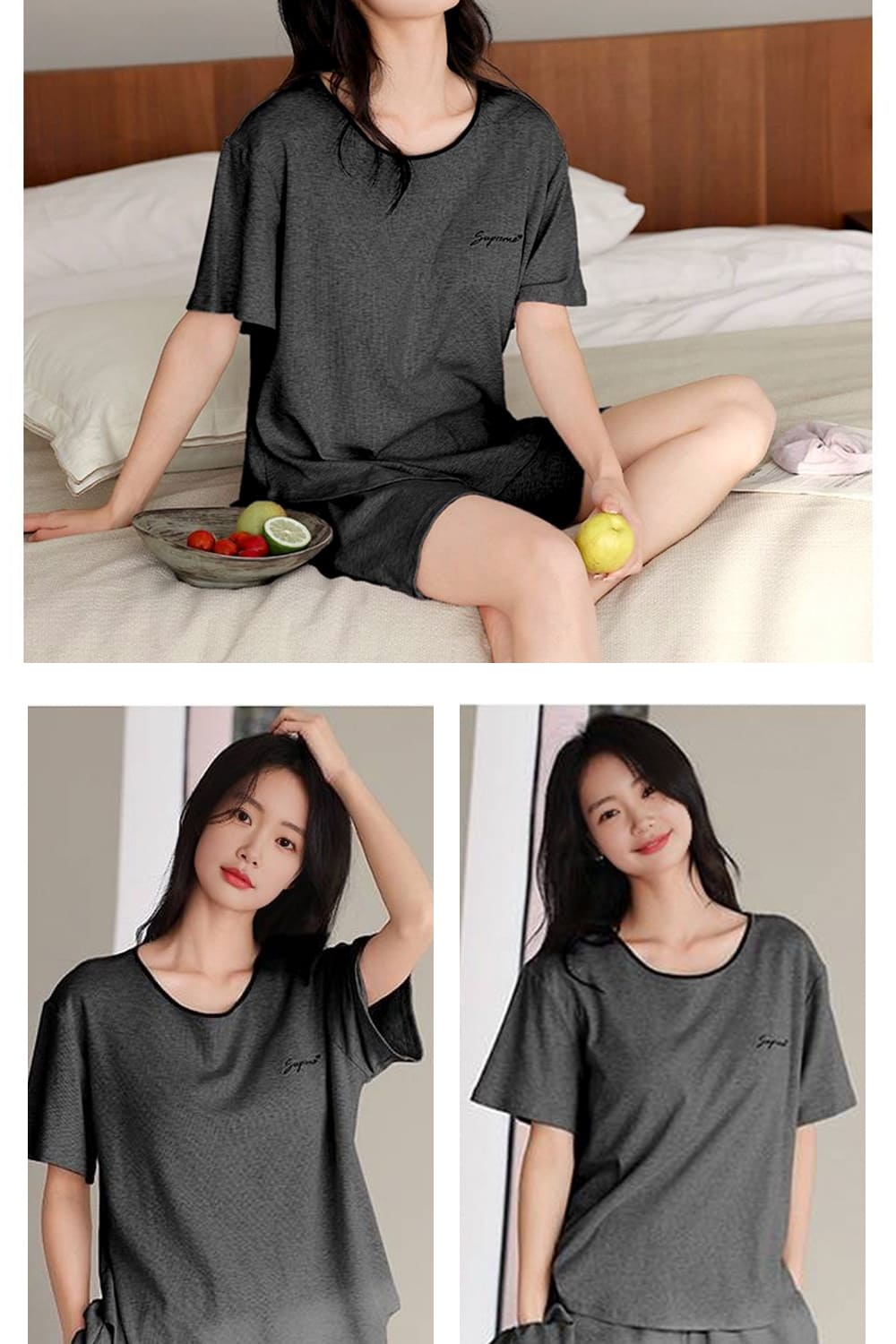 【Kosmiya】1套 帶胸墊 莫代爾 極簡少女短袖睡衣/女睡衣/居家服/涼感睡衣/睡衣套裝(3色可選/均碼/加大碼)