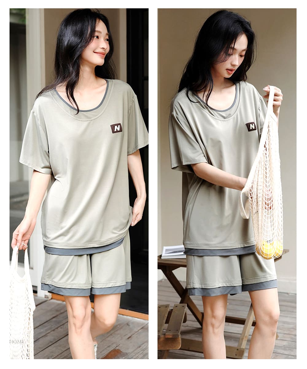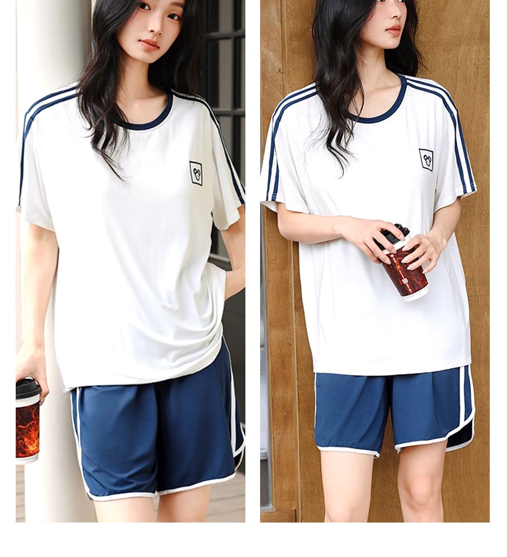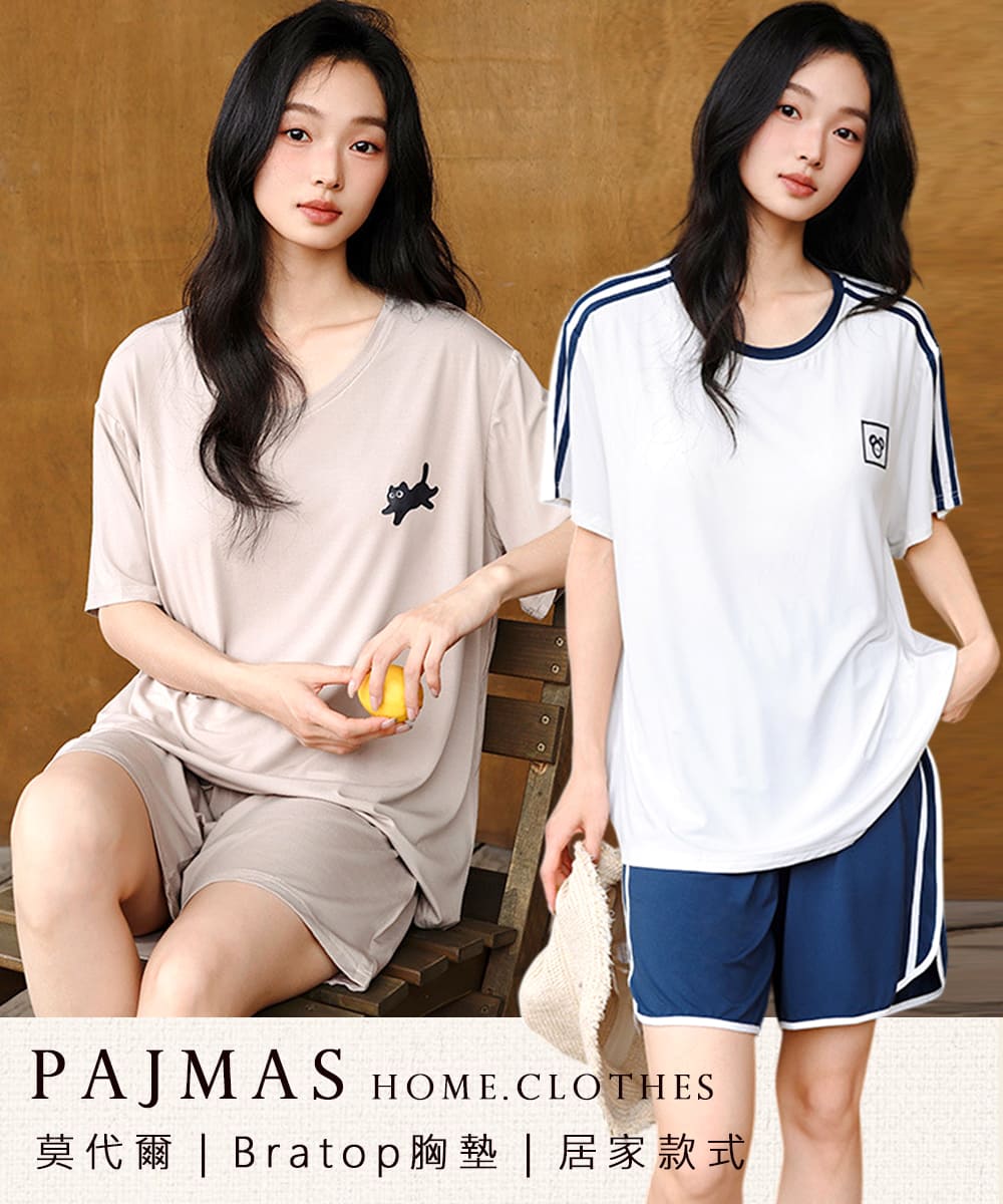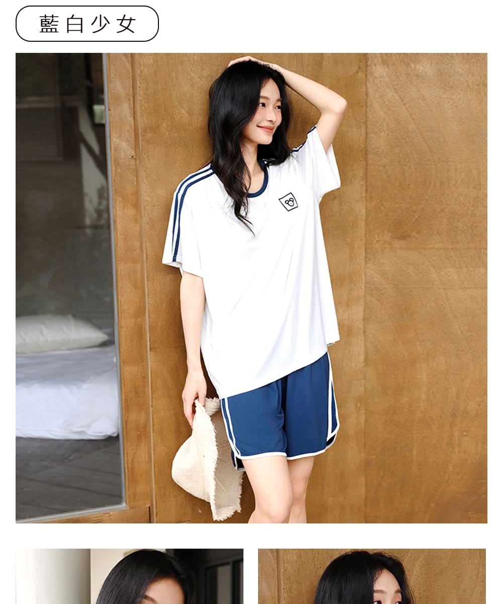 【Kosmiya】1套 帶胸墊 莫代爾 運動甜心短袖睡衣/女睡衣/居家服/涼感睡衣/睡衣套裝(4色可選/均碼/加大碼)