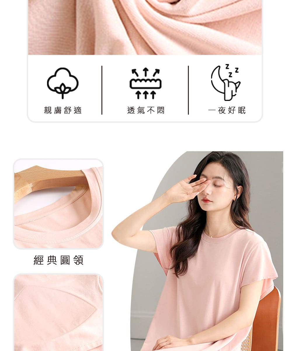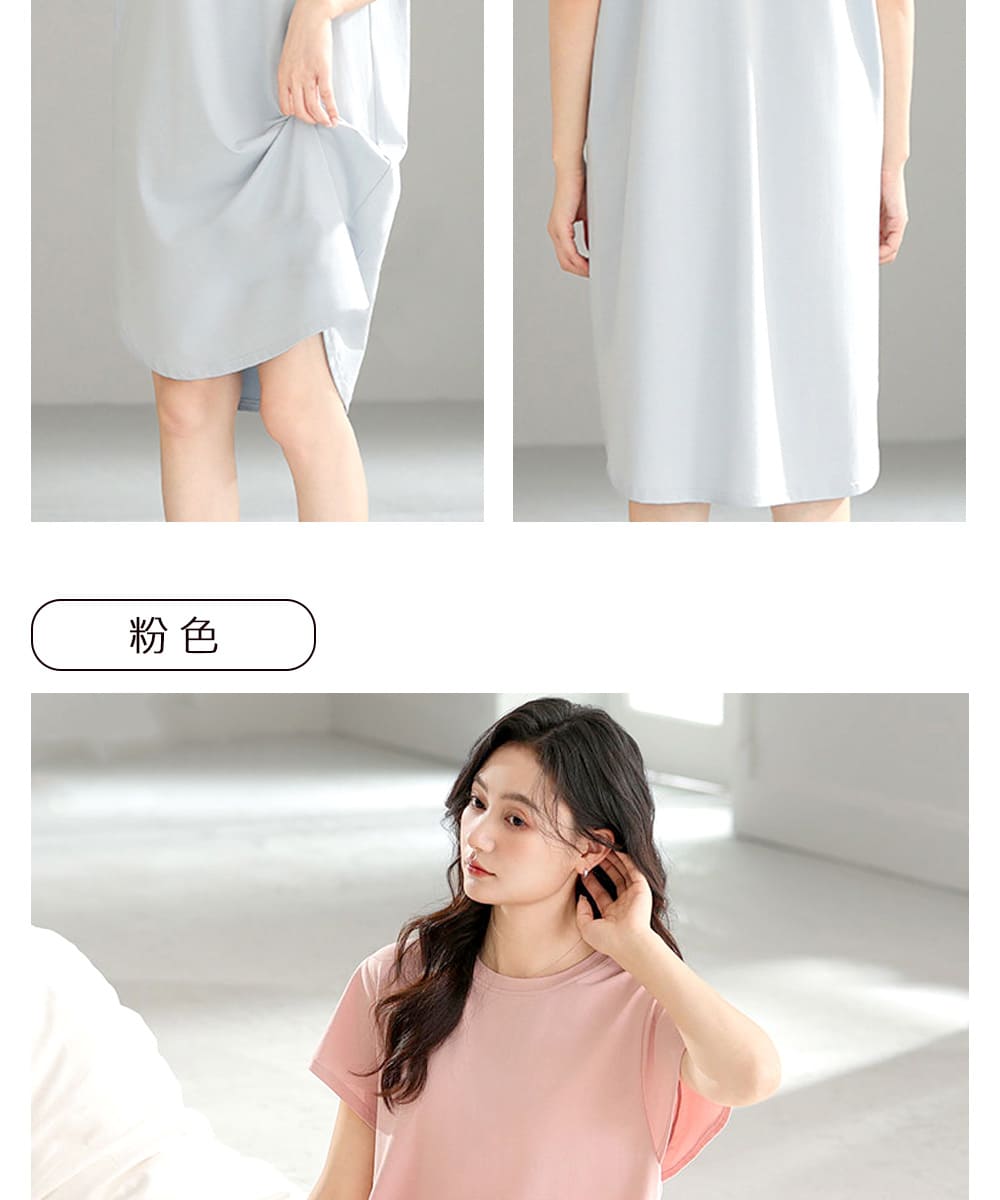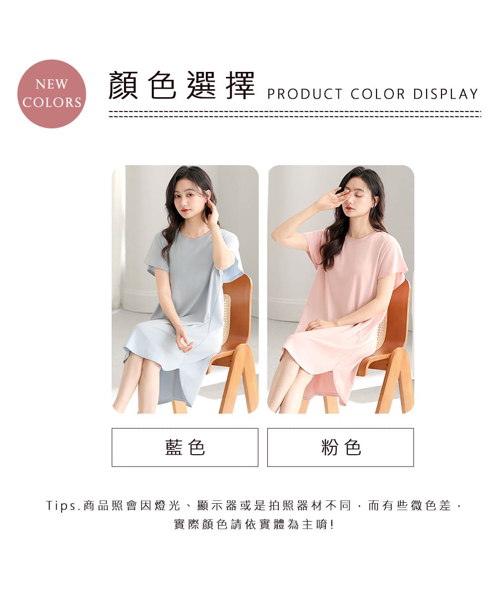 【Kosmiya】1套 帶胸墊 莫代爾 簡約淡雅短袖睡裙/女睡衣/睡裙/居家服/連身洋裝/洋裝(2色可選/均碼/加大碼)