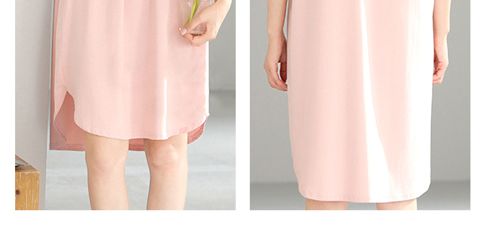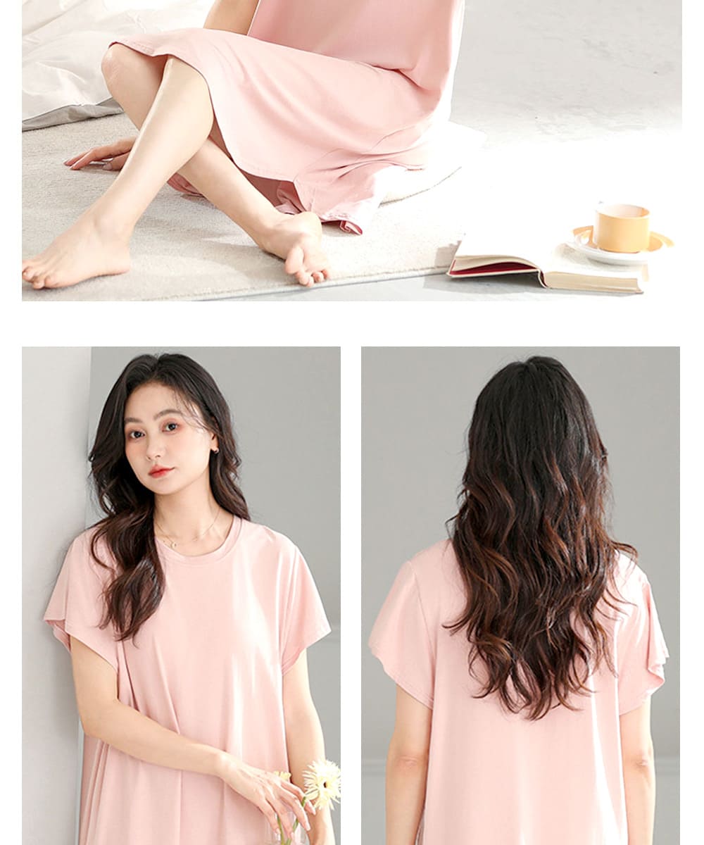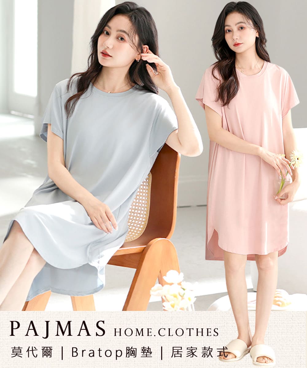 【Kosmiya】1套 帶胸墊 莫代爾 簡約淡雅短袖睡裙/女睡衣/睡裙/居家服/連身洋裝/洋裝(2色可選/均碼/加大碼)