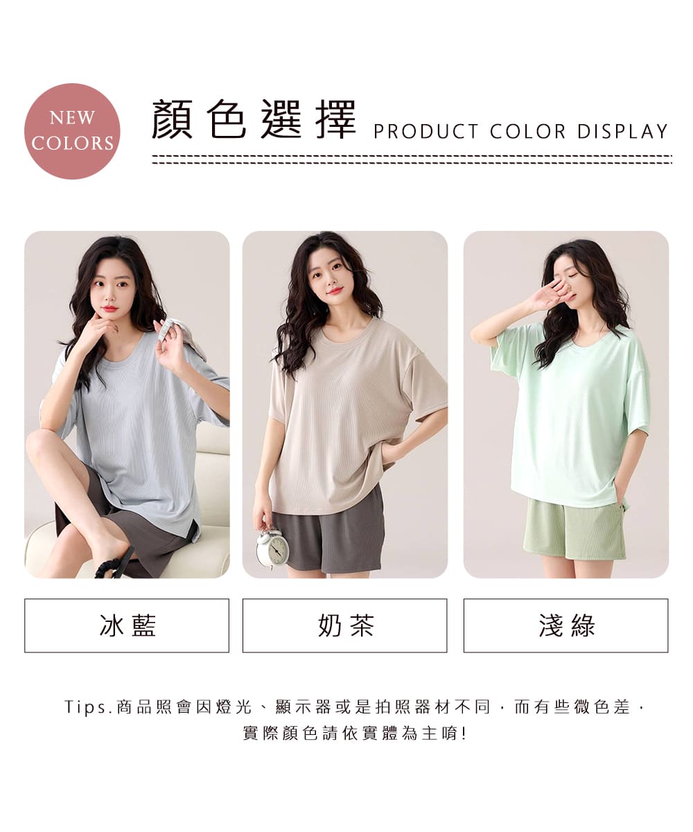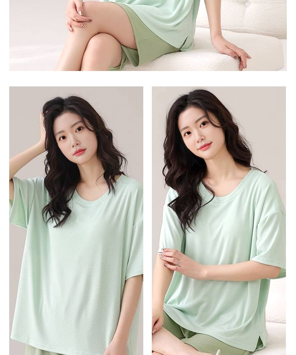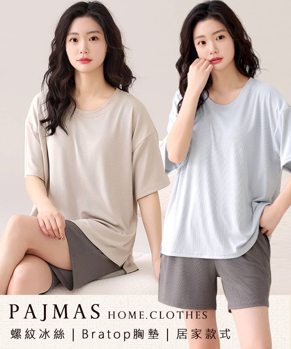 【Kosmiya】1套 帶胸墊 冰絲 經典圓領短袖睡衣/女睡衣/居家服/涼感睡衣/睡衣套裝(3色可選/均碼/加大碼)