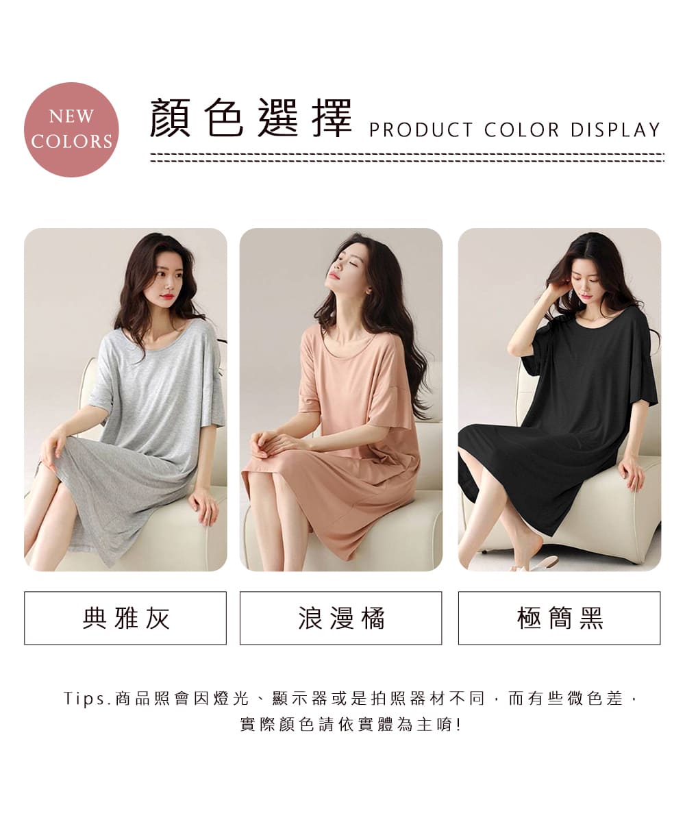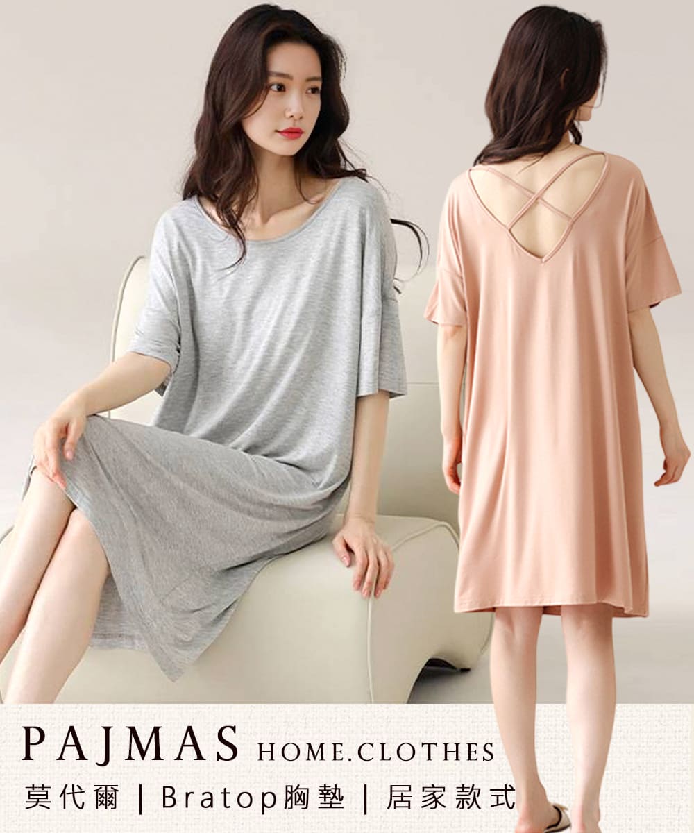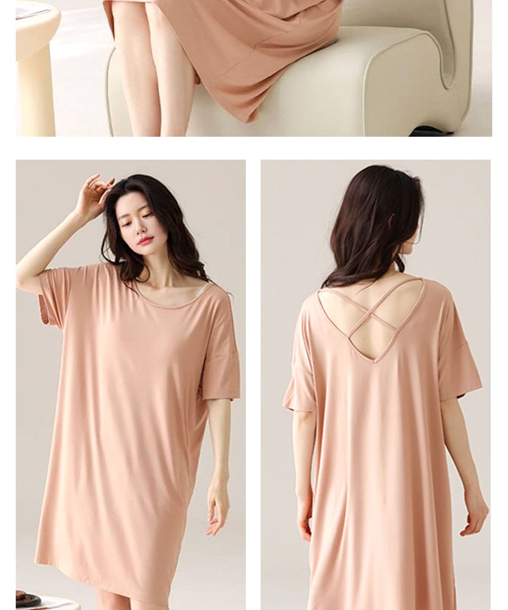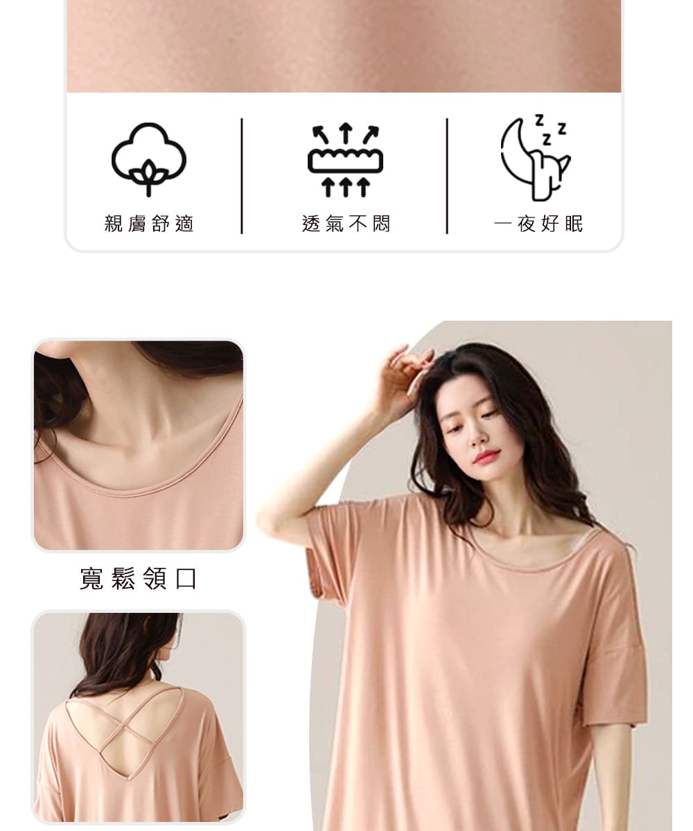 【Kosmiya】1套 帶胸墊 莫代爾 極簡美背短袖睡裙/女睡衣/居家服/連身洋裝/洋裝(3色可選/均碼/加大碼)