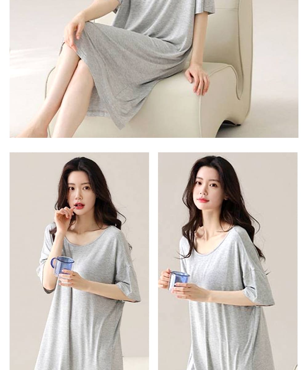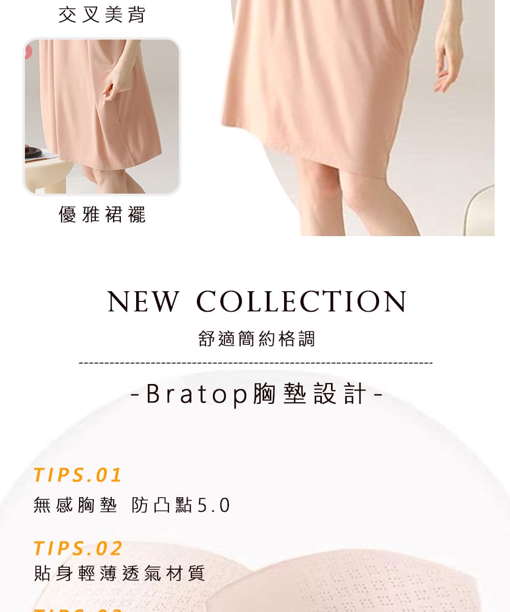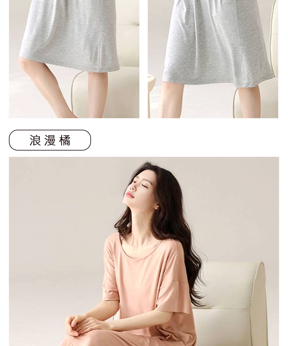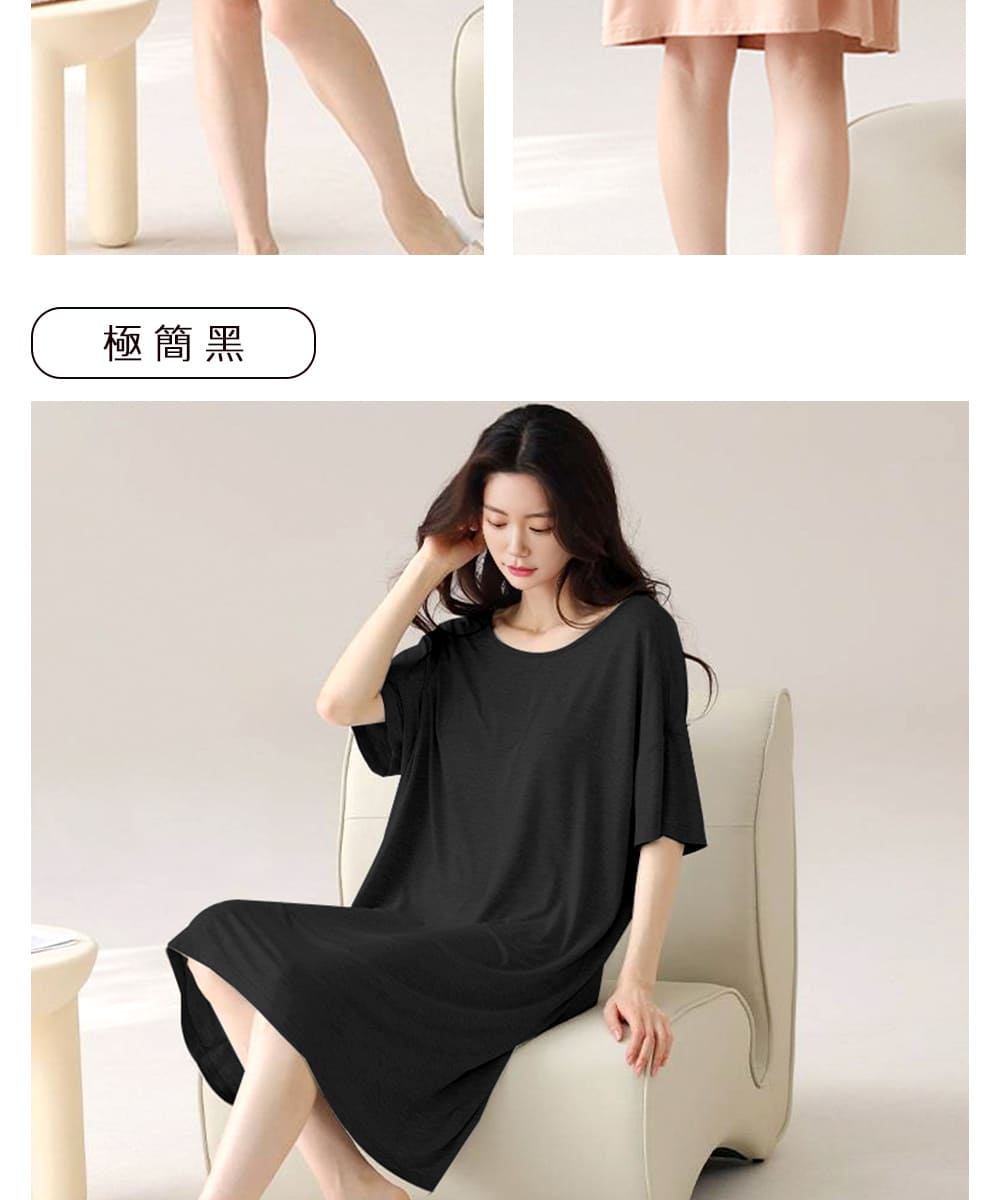 【Kosmiya】1套 帶胸墊 莫代爾 極簡美背短袖睡裙/女睡衣/居家服/連身洋裝/洋裝(3色可選/均碼/加大碼)