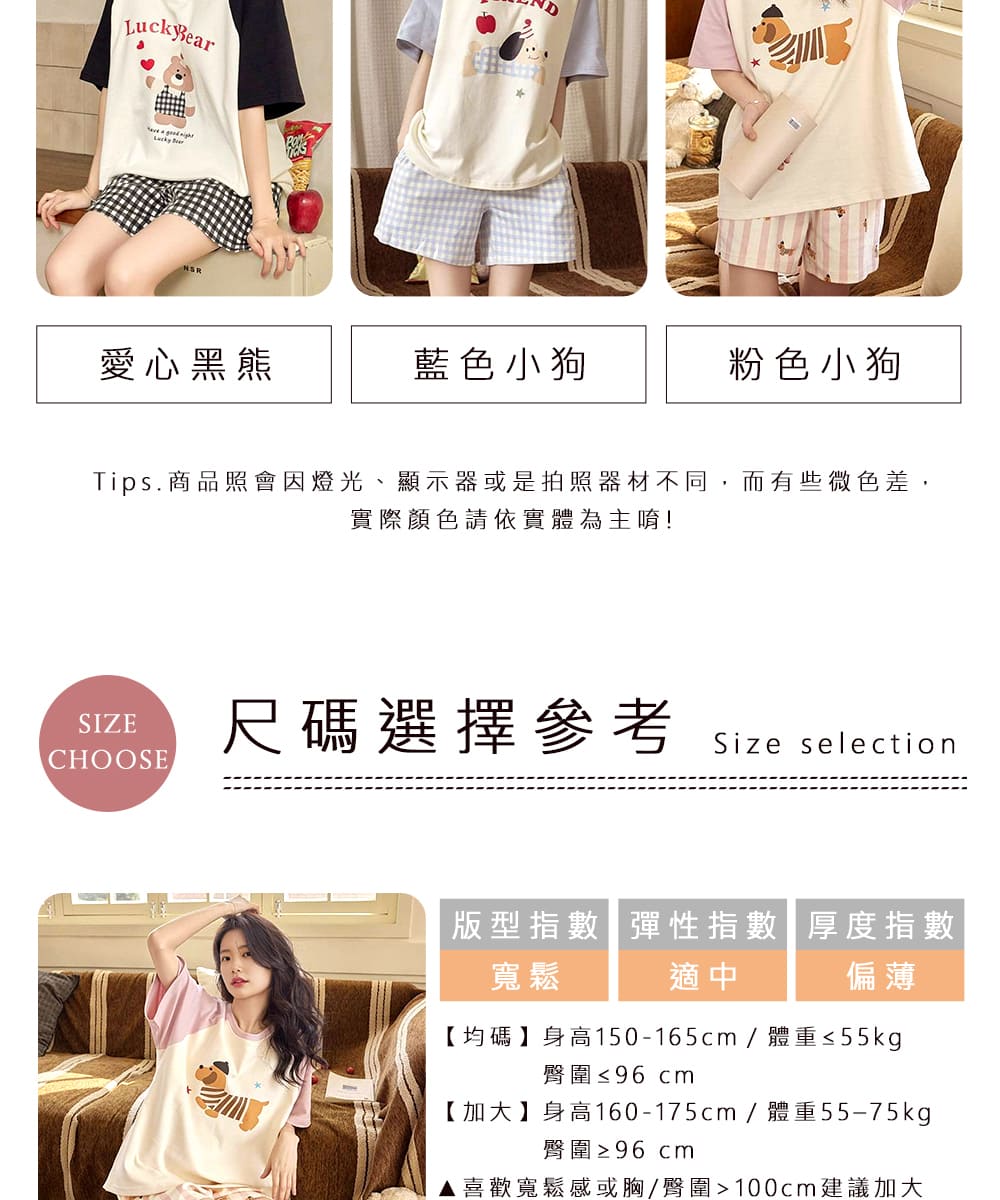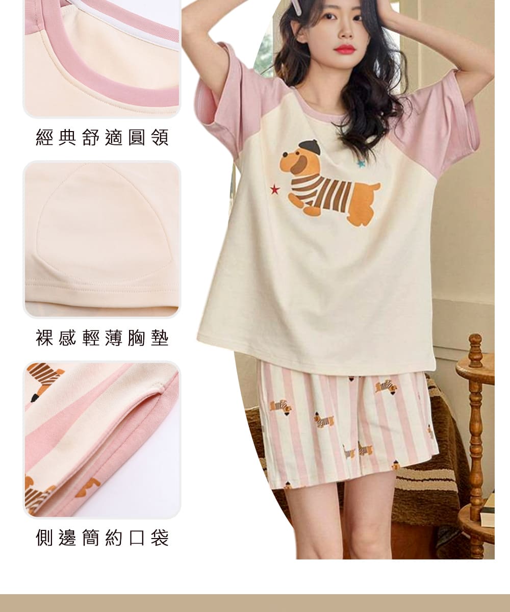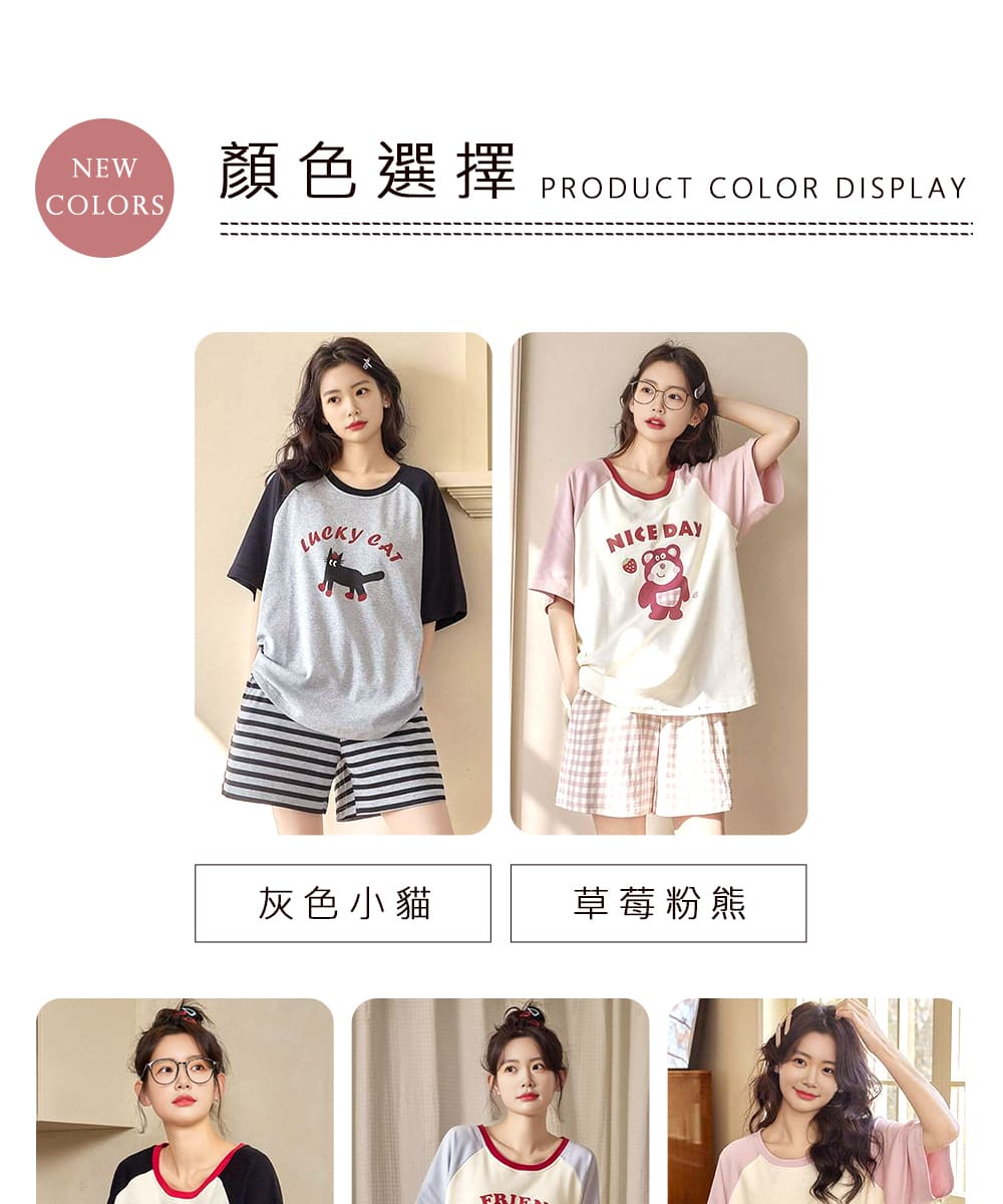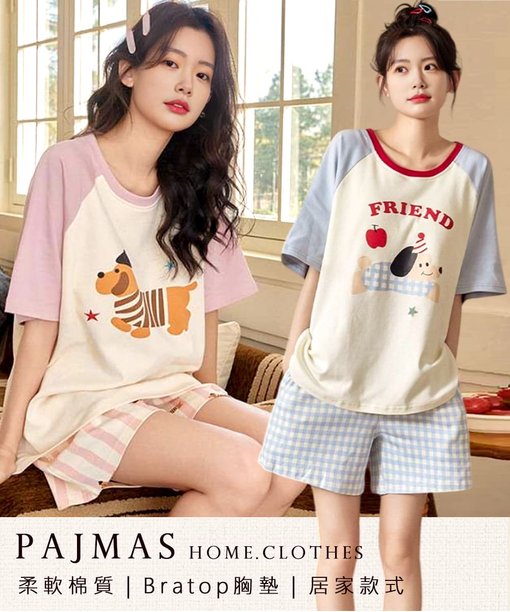 【Kosmiya】1套 帶胸墊 棉質 韓系俏皮短袖睡衣/女睡衣/居家服/涼感睡衣/睡衣套裝(5色可選/均碼/加大碼)