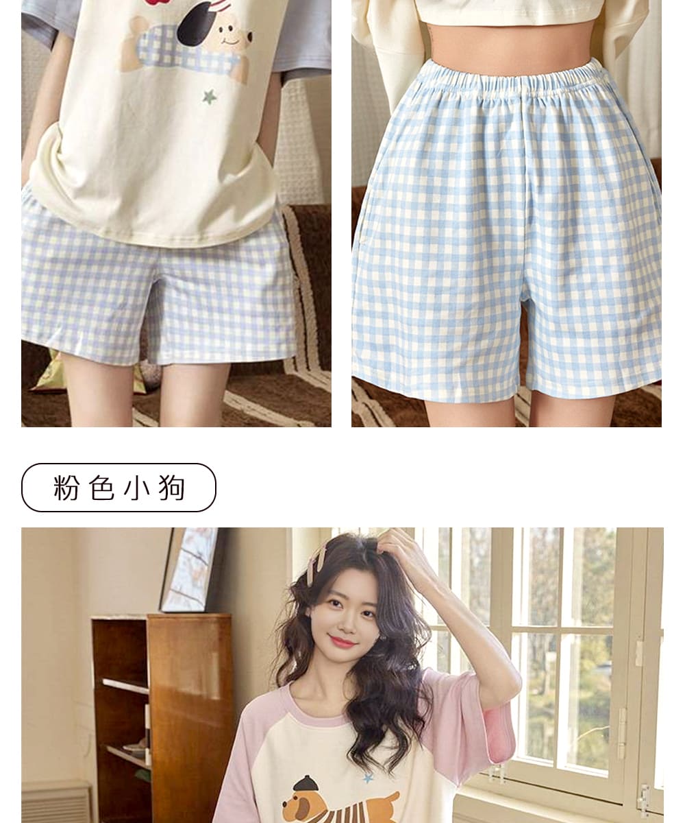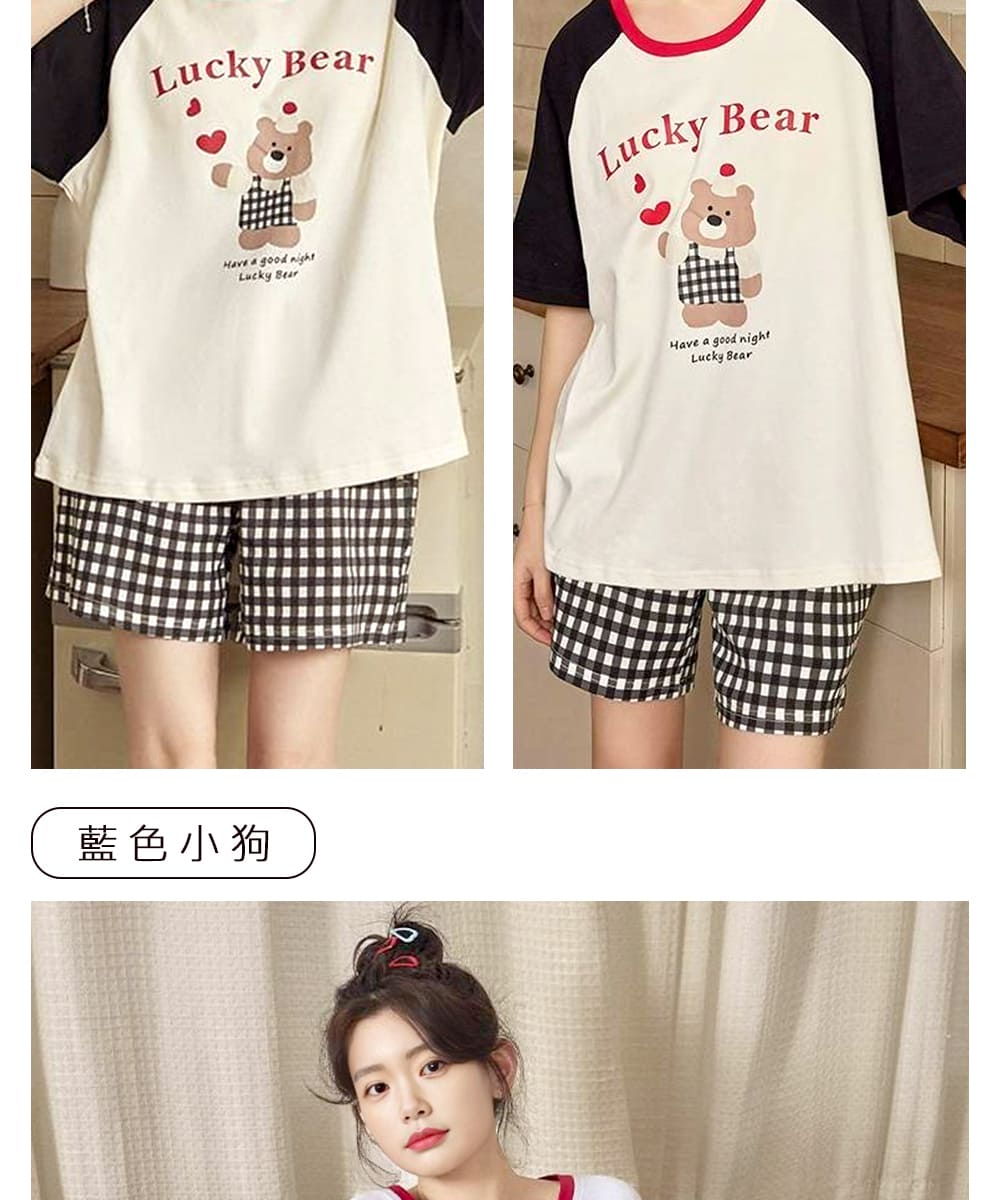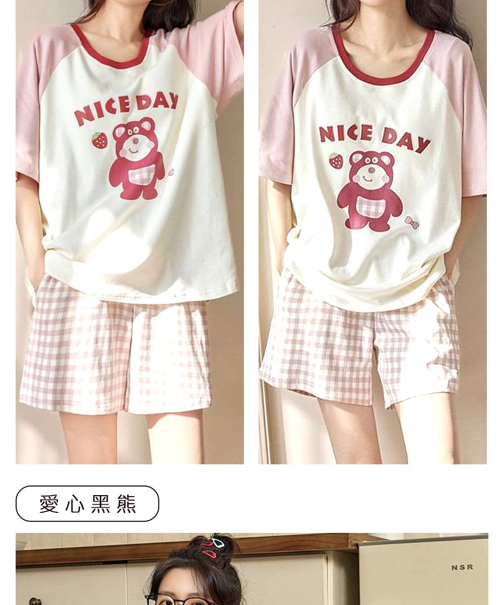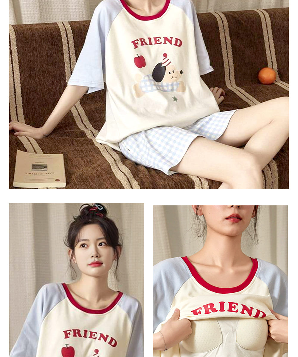 【Kosmiya】1套 帶胸墊 棉質 韓系俏皮短袖睡衣/女睡衣/居家服/涼感睡衣/睡衣套裝(5色可選/均碼/加大碼)
