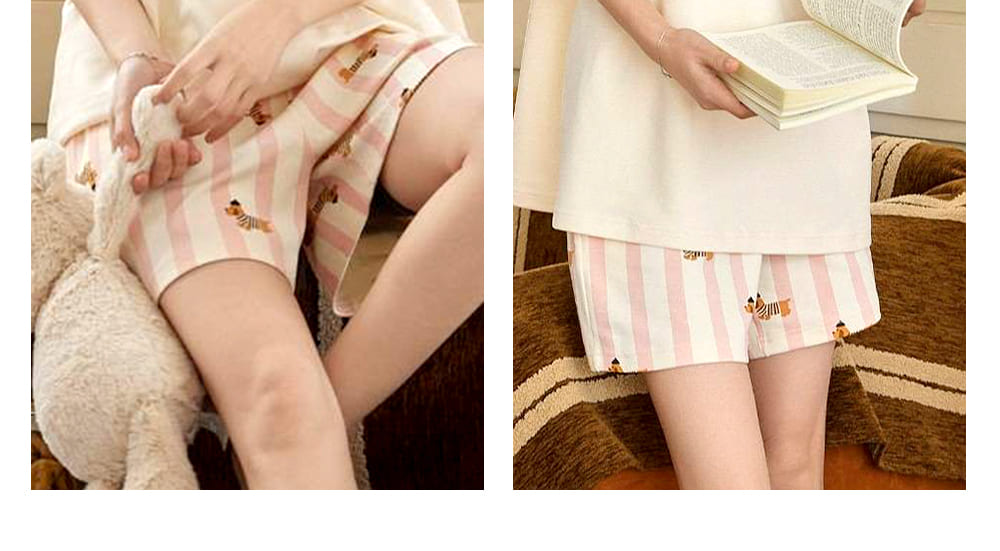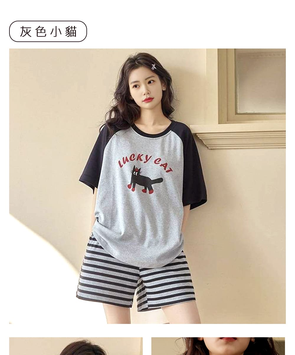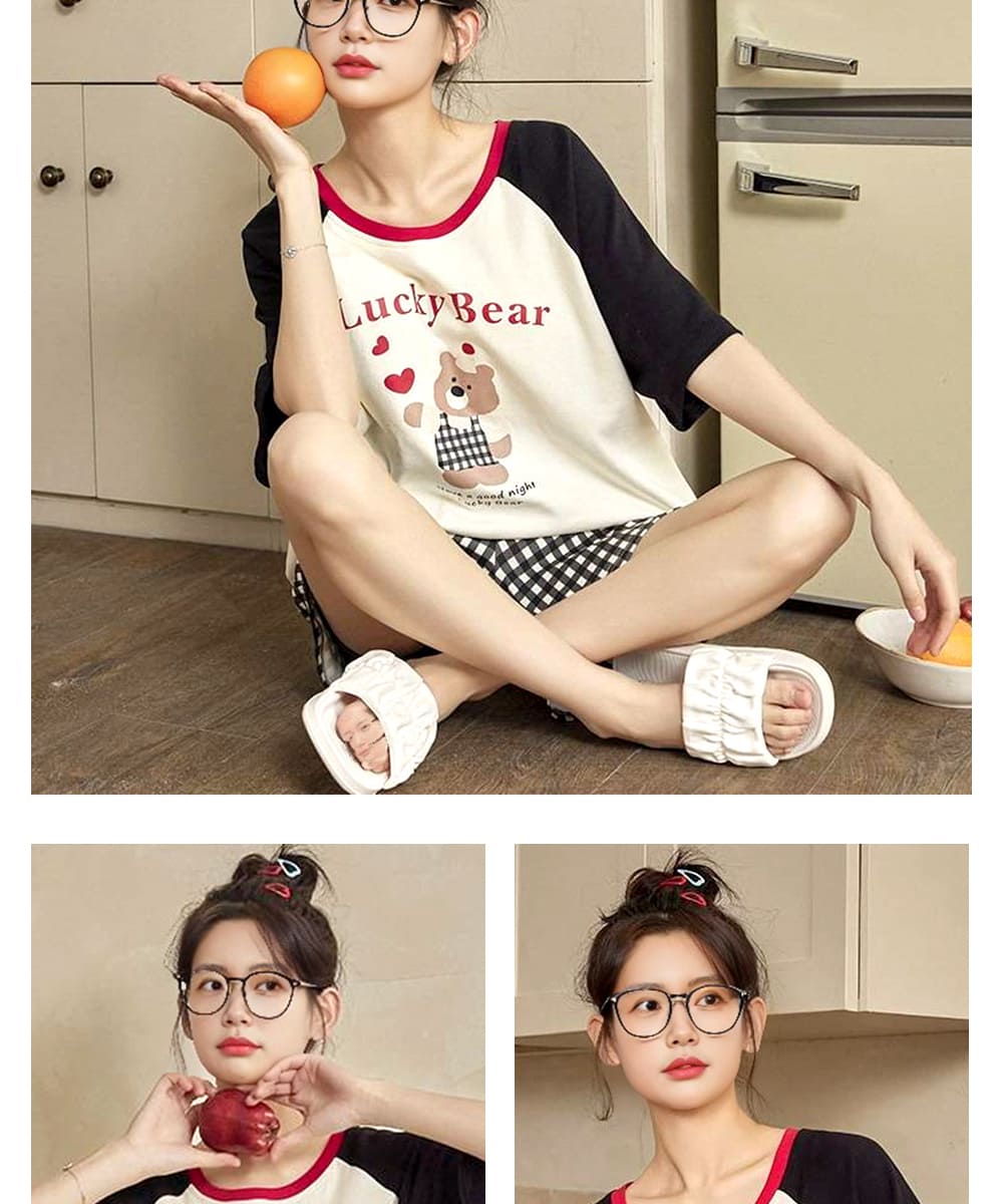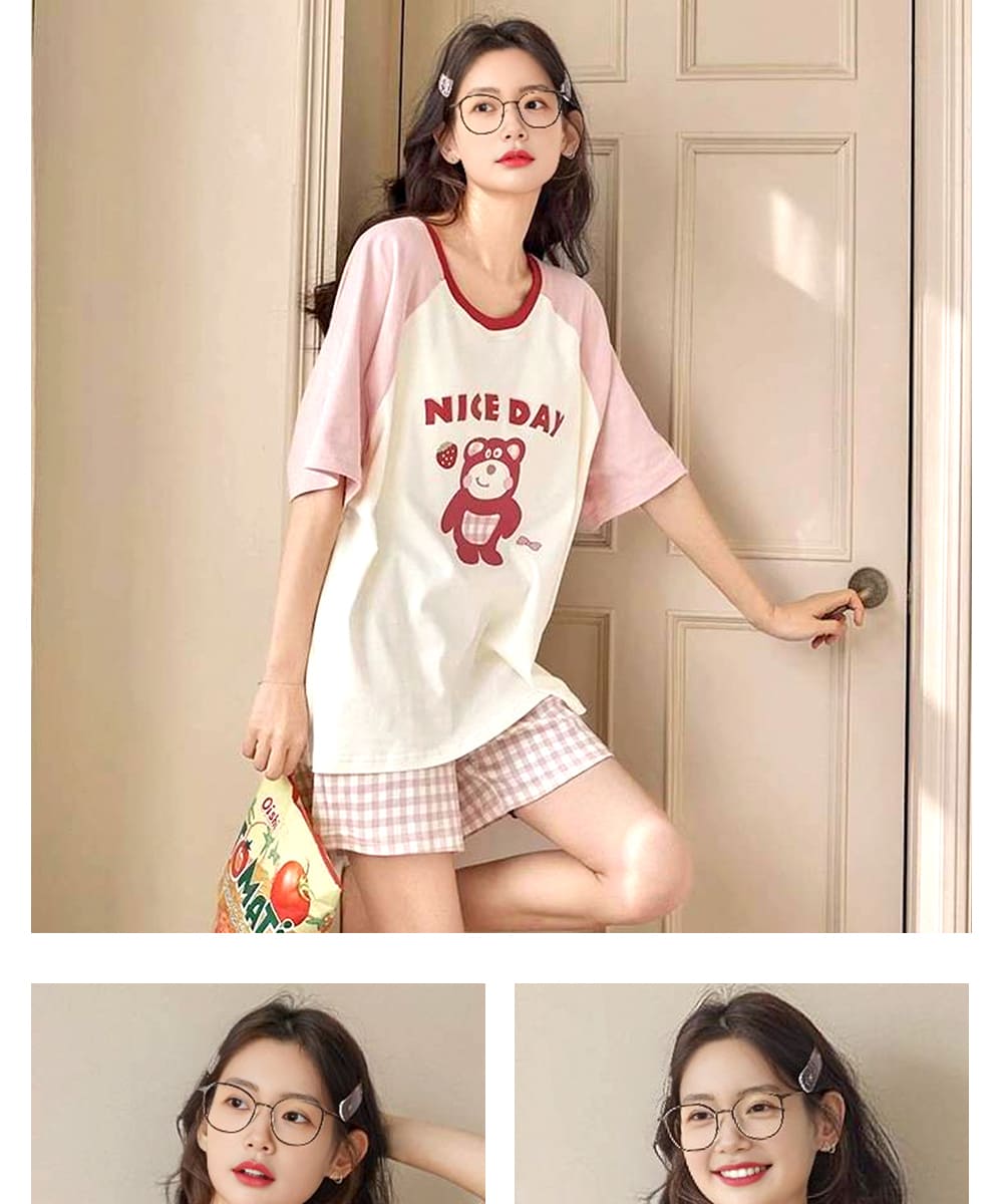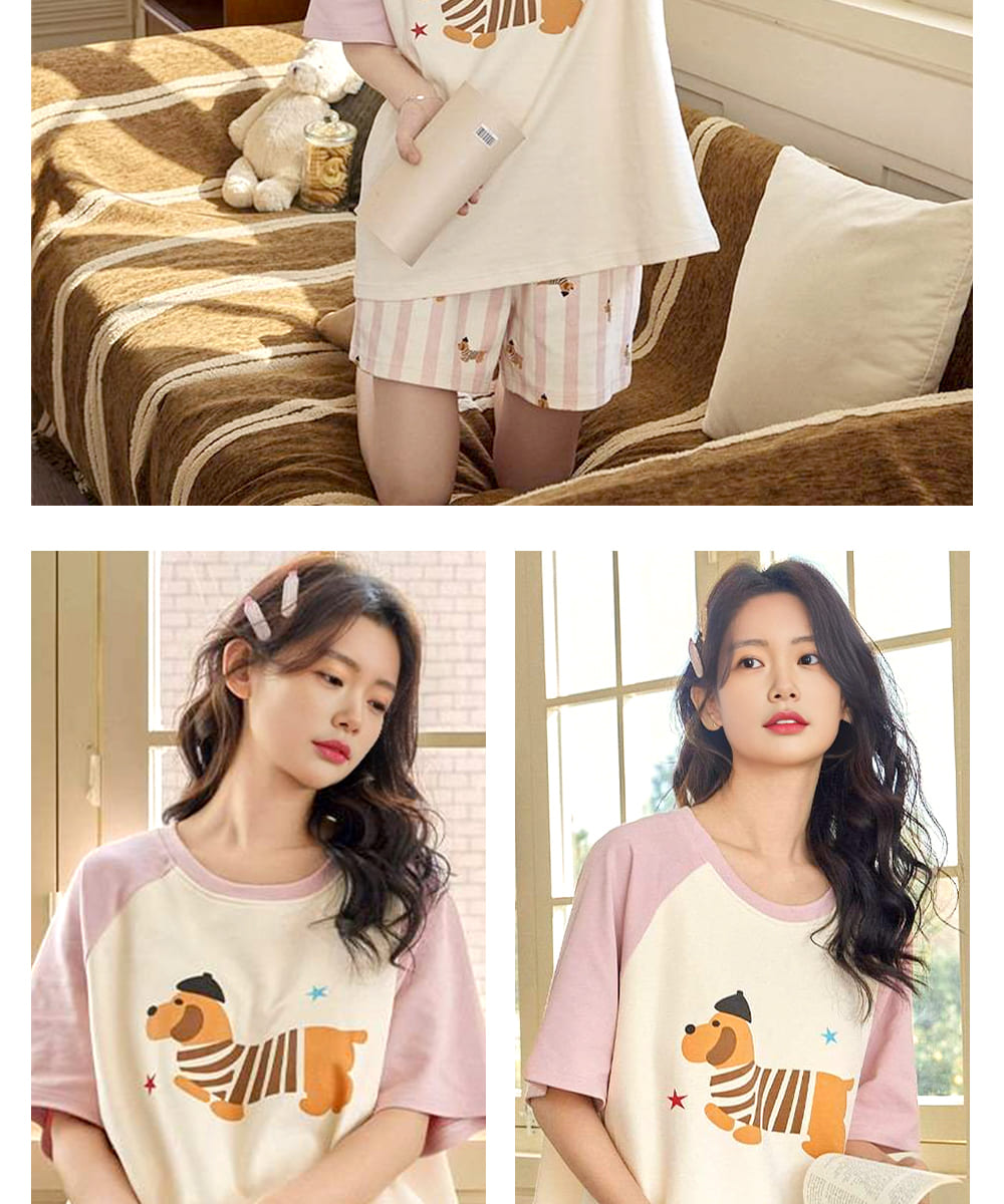 【Kosmiya】1套 帶胸墊 棉質 韓系俏皮短袖睡衣/女睡衣/居家服/涼感睡衣/睡衣套裝(5色可選/均碼/加大碼)