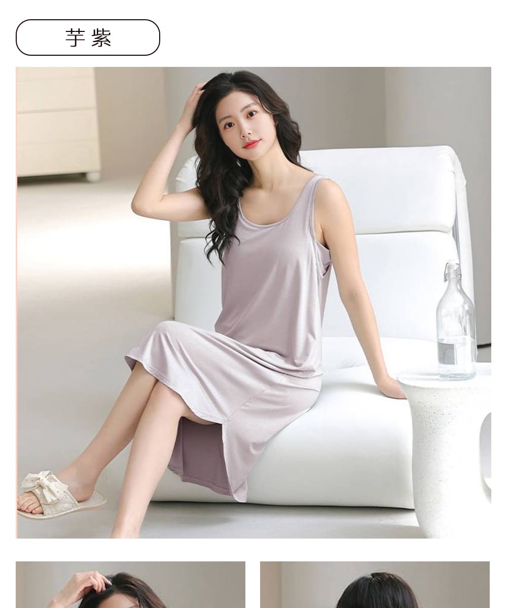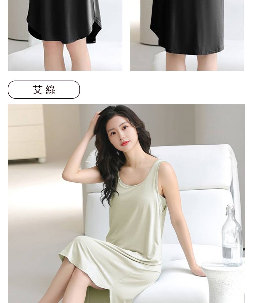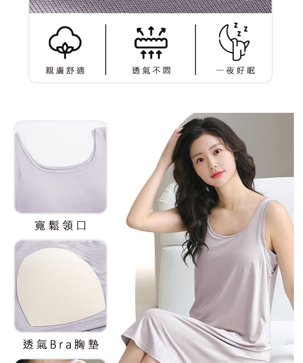 【Kosmiya】1套 帶胸墊 莫代爾 冰涼雪糕短袖睡裙/女睡衣/居家服/連身洋裝/洋裝(4色可選/均碼/加大碼)