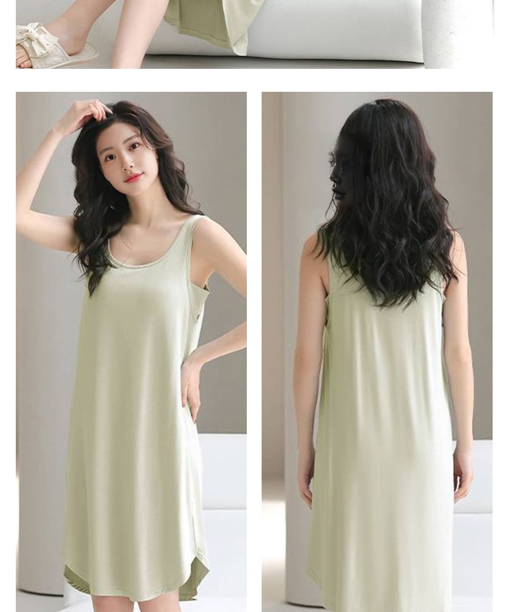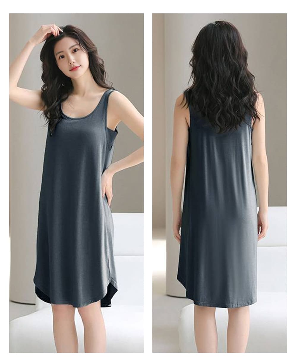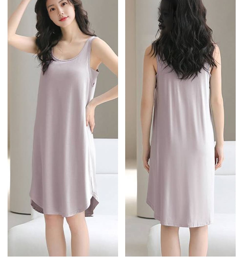 【Kosmiya】1套 帶胸墊 莫代爾 冰涼雪糕短袖睡裙/女睡衣/居家服/連身洋裝/洋裝(4色可選/均碼/加大碼)