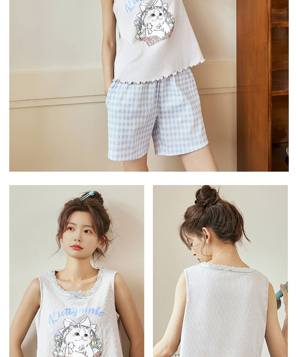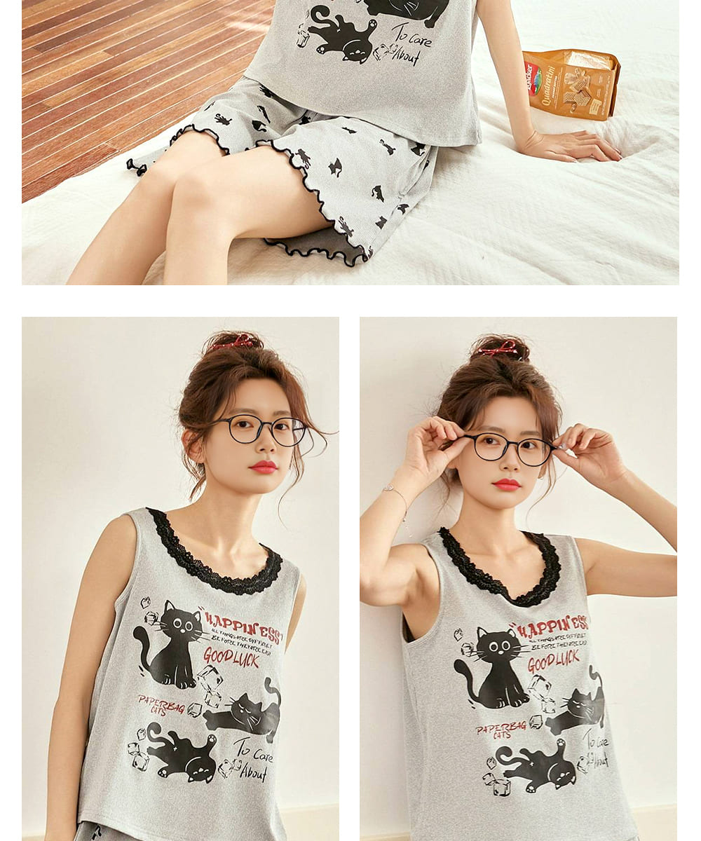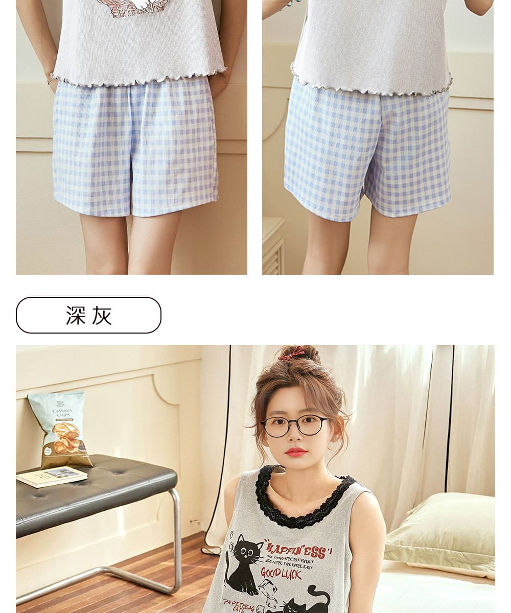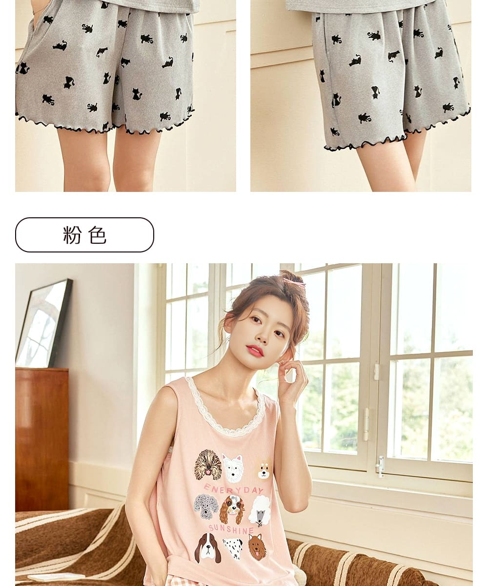 【Kosmiya】1套 帶胸墊 冰絲 甜甜小寵無袖睡衣/女睡衣/居家服/涼感睡衣/睡衣套裝(3色可選/均碼/加大碼)