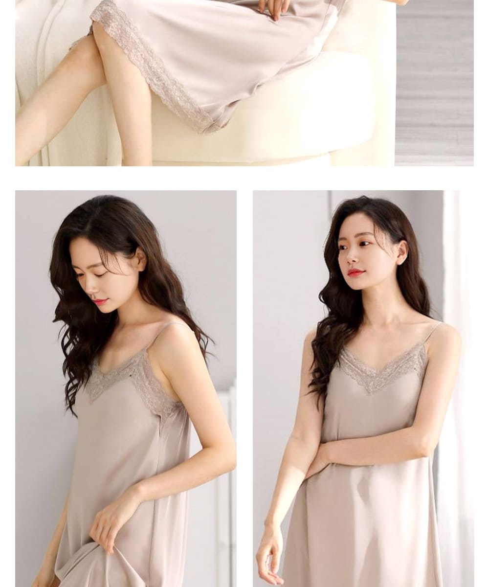 【Kosmiya】1套 帶胸墊 冰絲緞面 性感蕾絲睡裙/女睡衣/居家服/連身洋裝/洋裝(均碼/加大碼)
