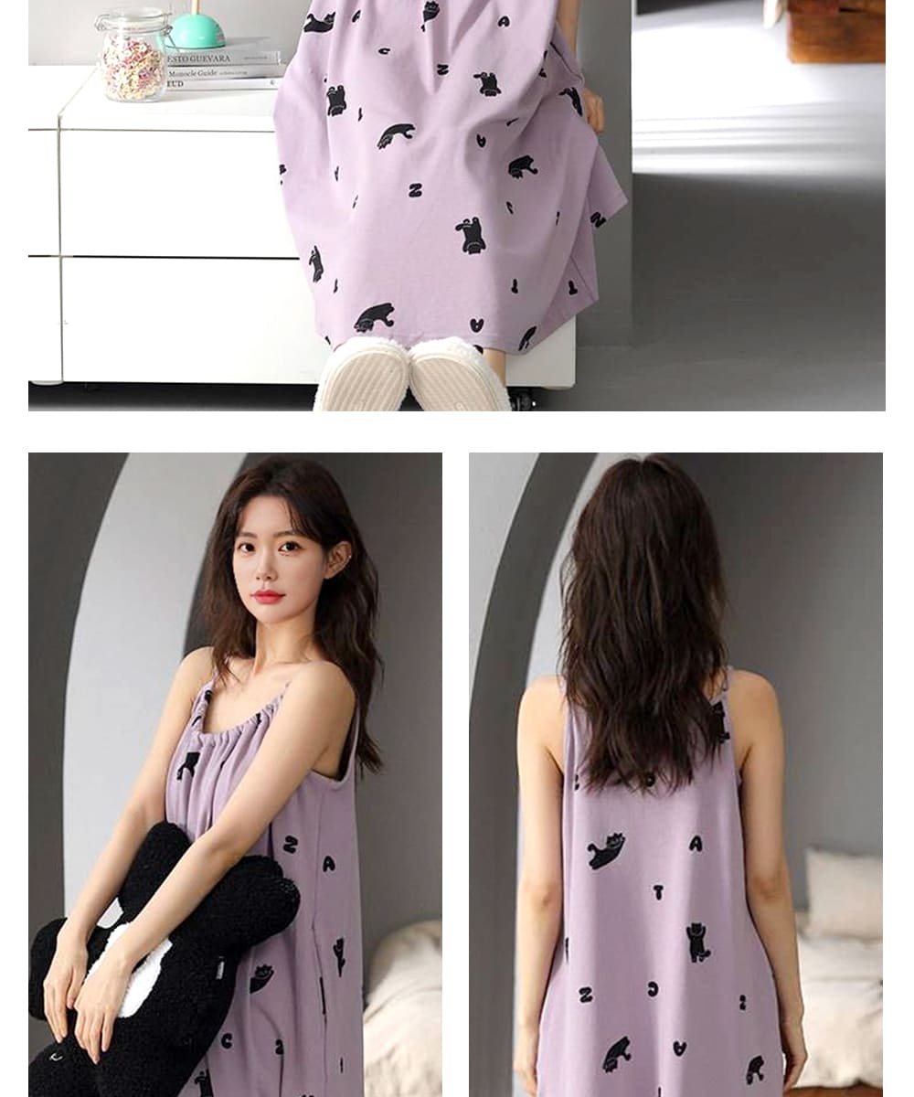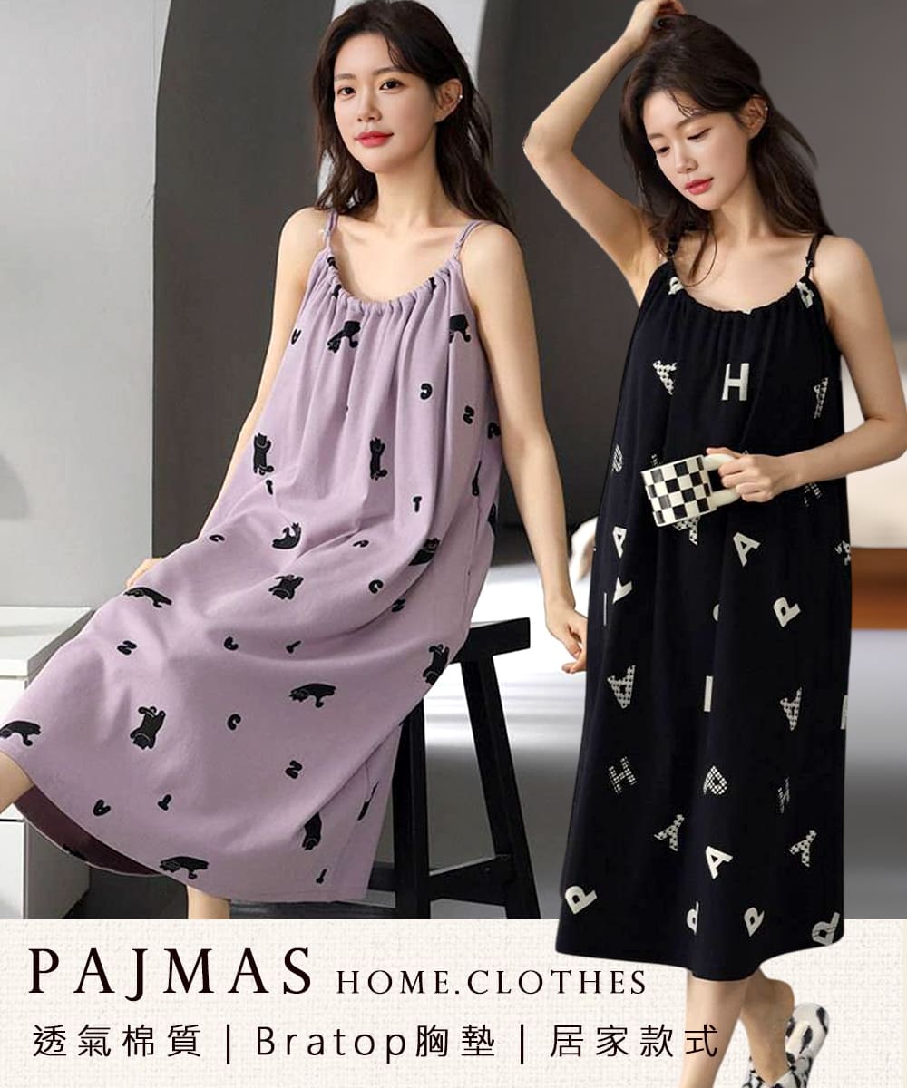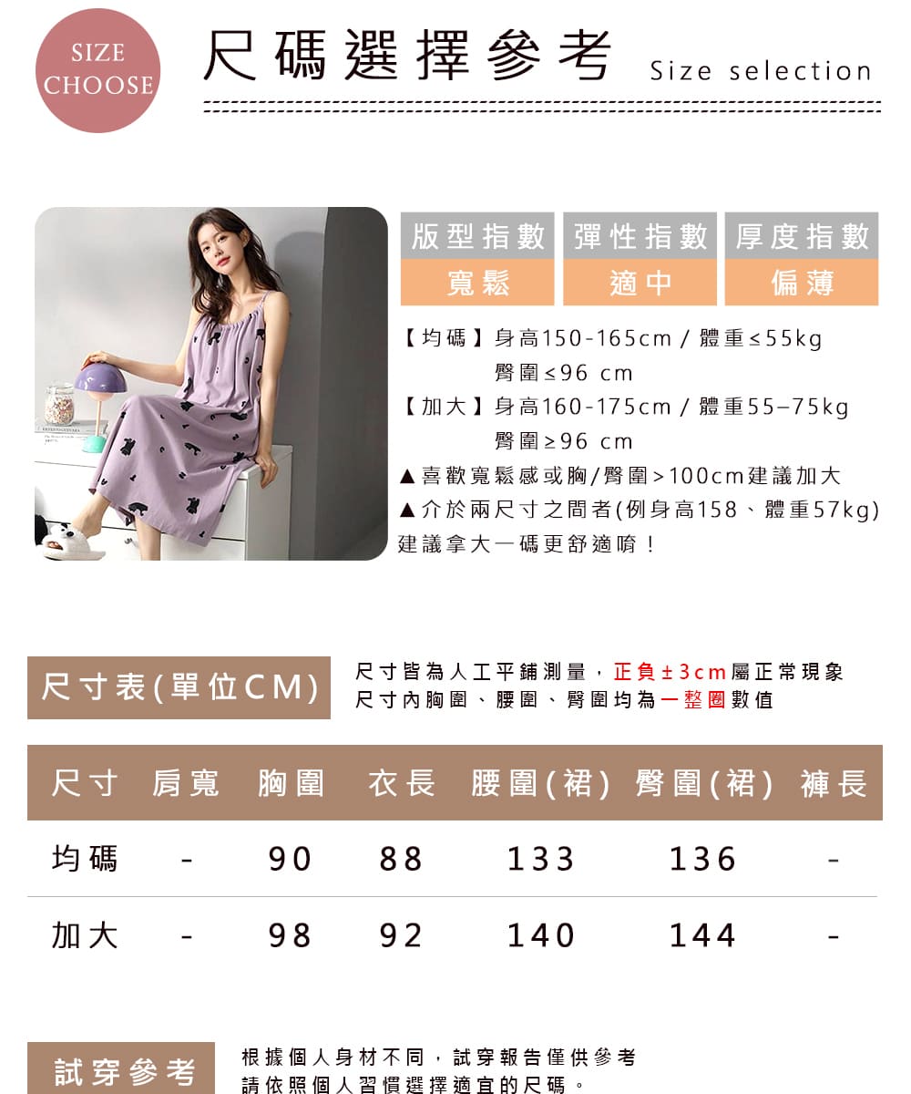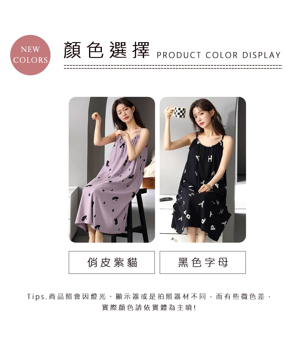 【Kosmiya】1套 帶胸墊 棉質 甜心可愛無袖睡裙/女睡衣/居家服/連身洋裝/洋裝(2色可選/均碼/加大碼)