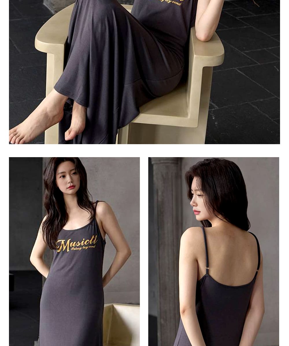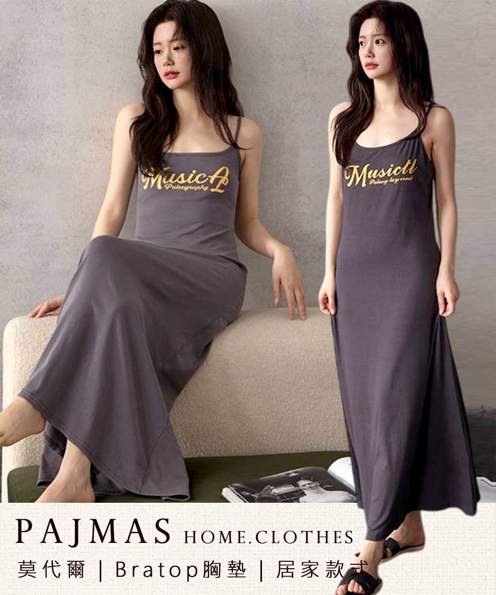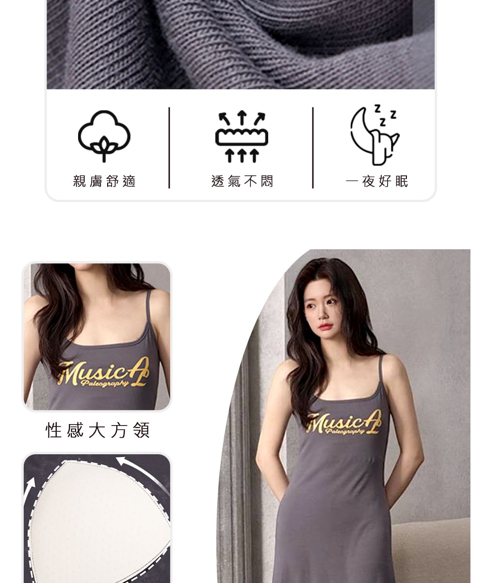 【Kosmiya】1套 帶胸墊 莫代爾 歐美微醺無袖睡裙/女睡衣/睡裙/居家服/連身洋裝/洋裝(2色可選/均碼/加大碼)