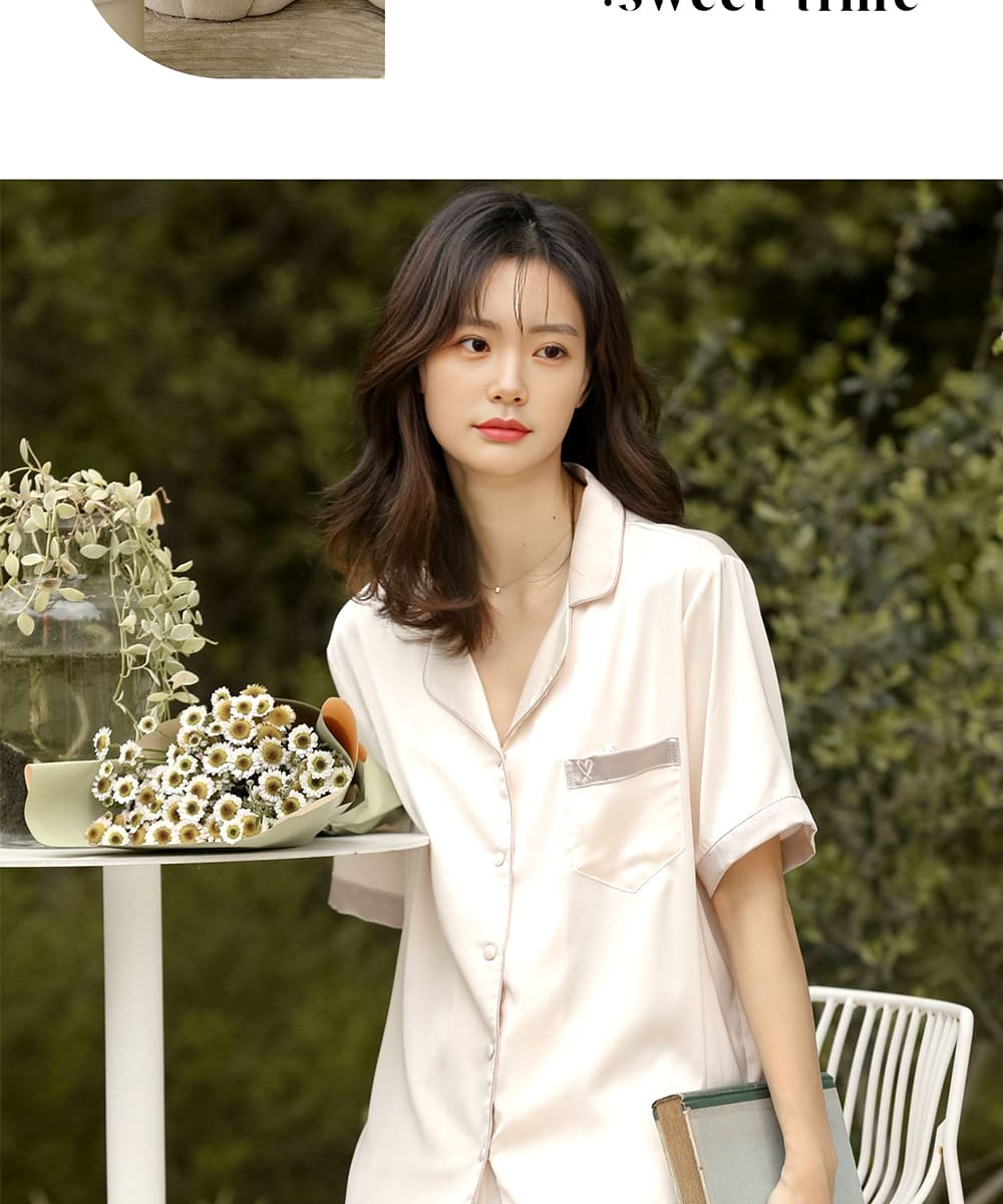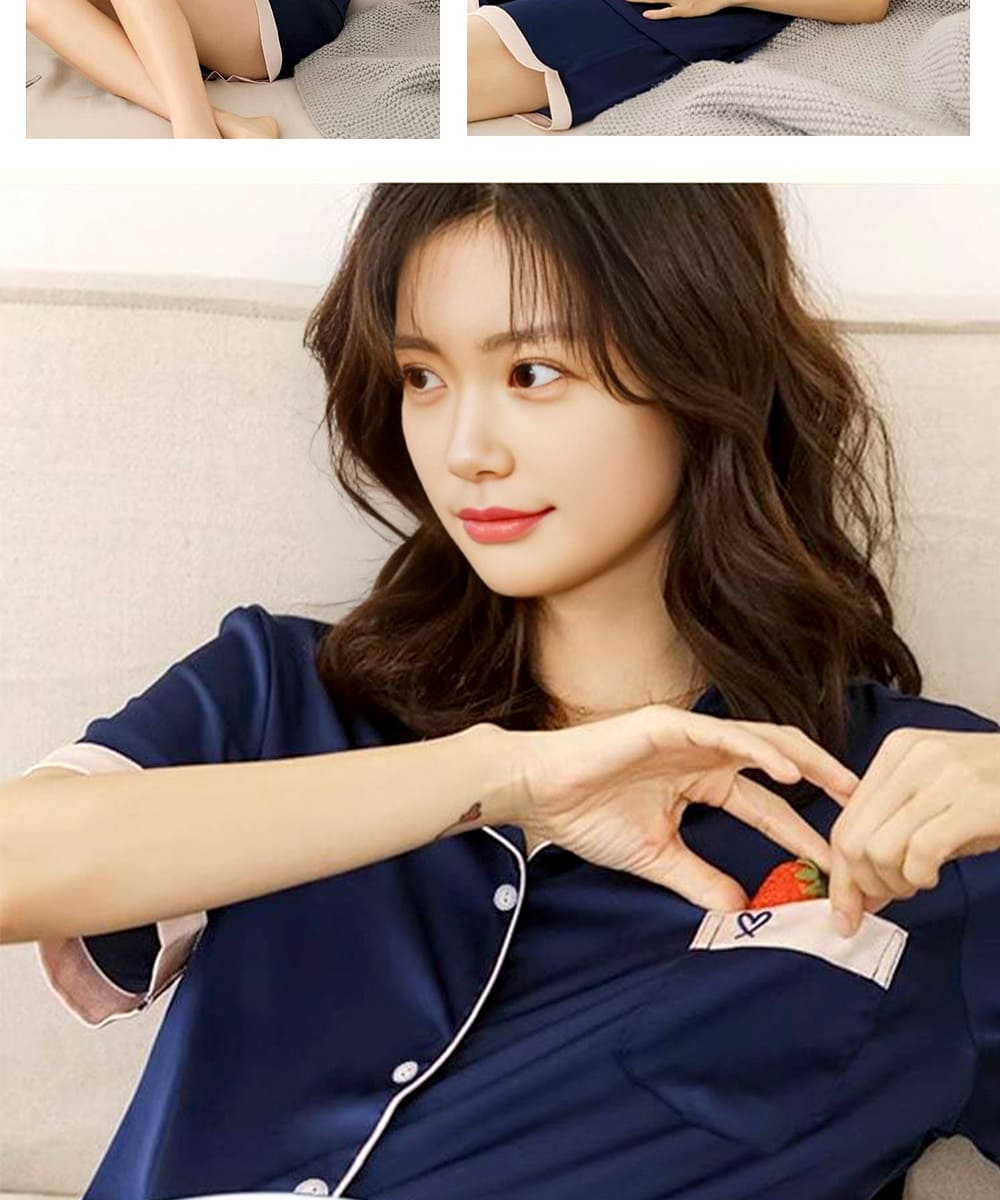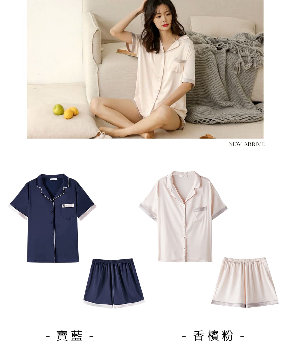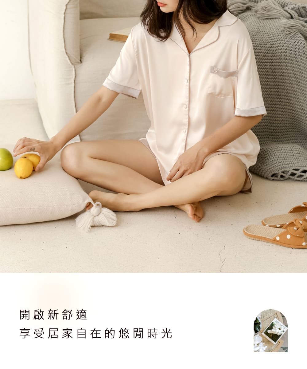 【Kosmiya】1套 專櫃級 冰絲緞面 仲夏愛戀短袖睡衣/睡衣/居家服/涼感睡衣/睡衣套裝(2色可選/均碼/加大碼)