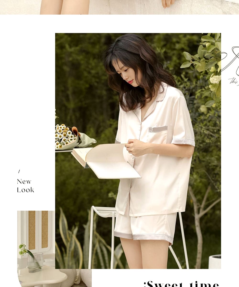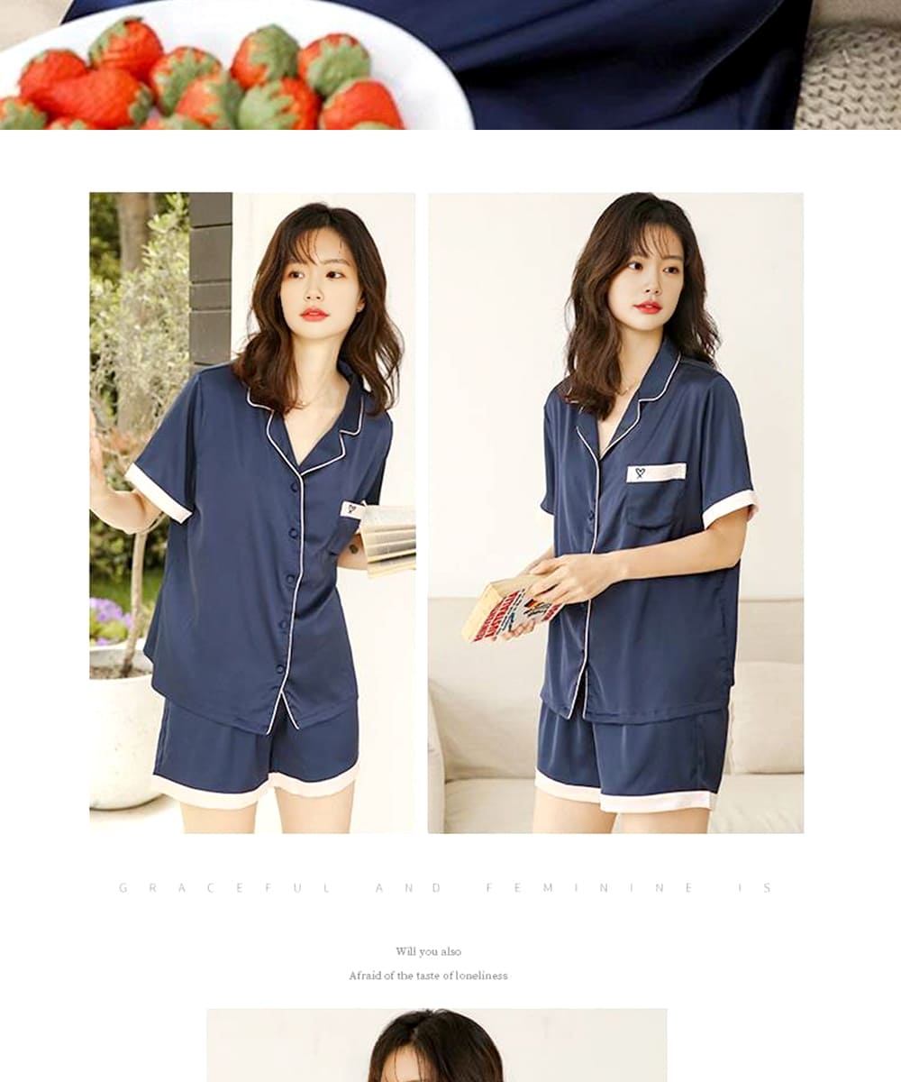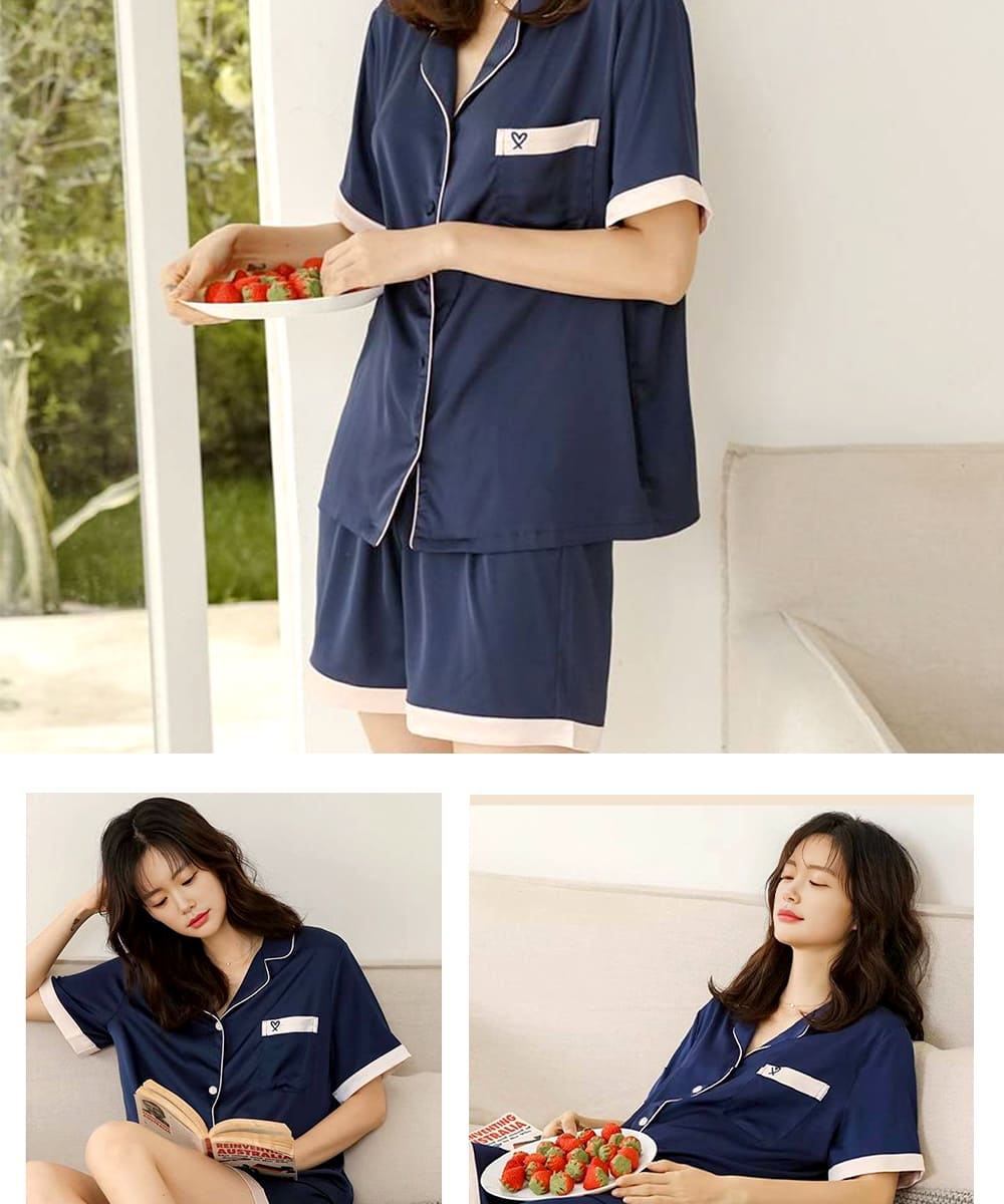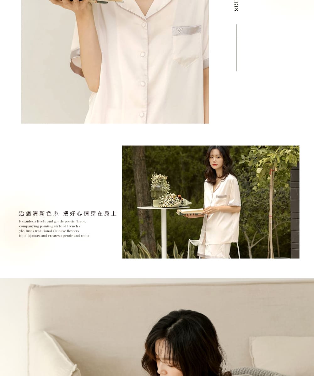 【Kosmiya】1套 專櫃級 冰絲緞面 仲夏愛戀短袖睡衣/睡衣/居家服/涼感睡衣/睡衣套裝(2色可選/均碼/加大碼)