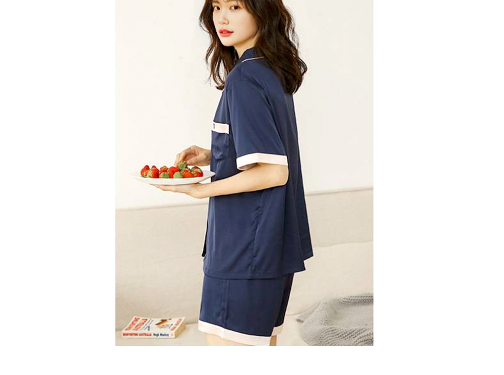 【Kosmiya】1套 帶胸墊 冰絲 微笑甜心短袖睡衣/女睡衣/居家服/涼感睡衣/睡衣套裝(3色可選/均碼/加大碼)