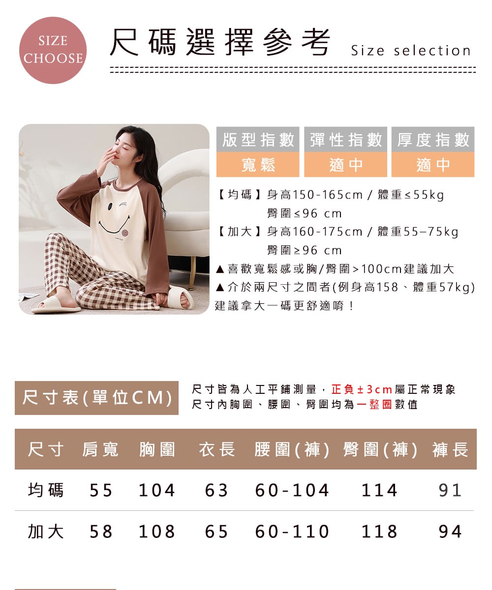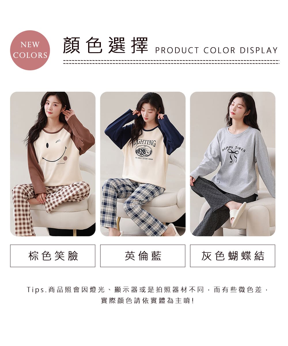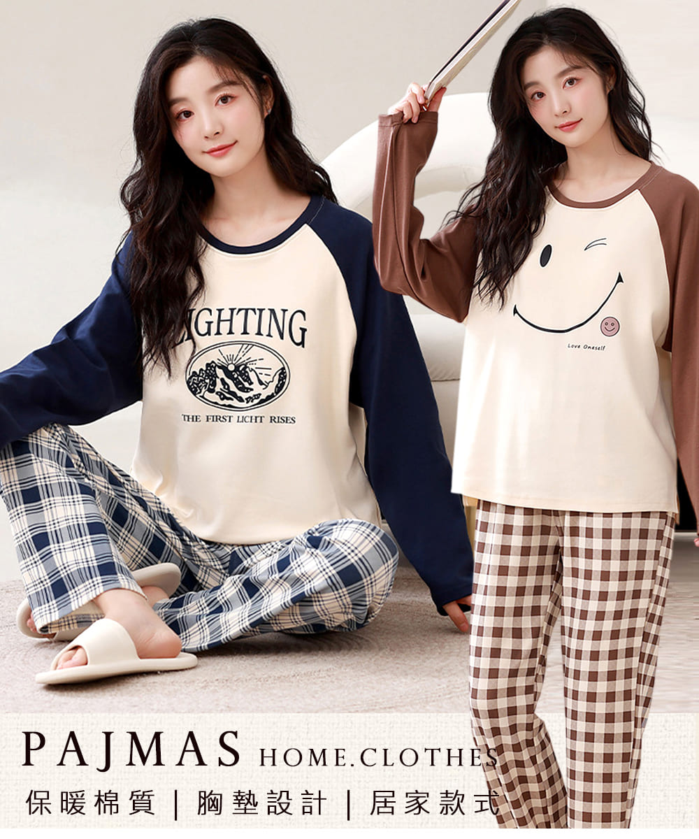 【Kosmiya】1套 帶胸墊 棉質慵懶柔棉長袖睡衣/女睡衣/居家服/保暖睡衣/睡衣套裝(3色可選/均碼/加大碼)