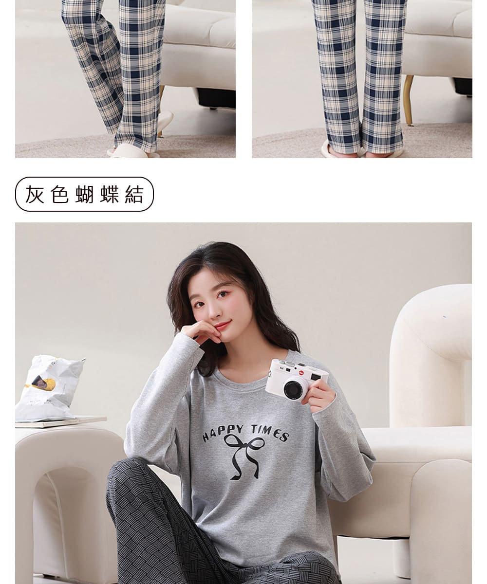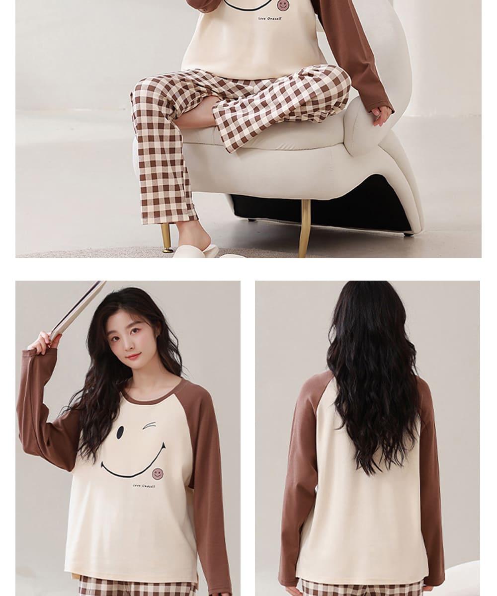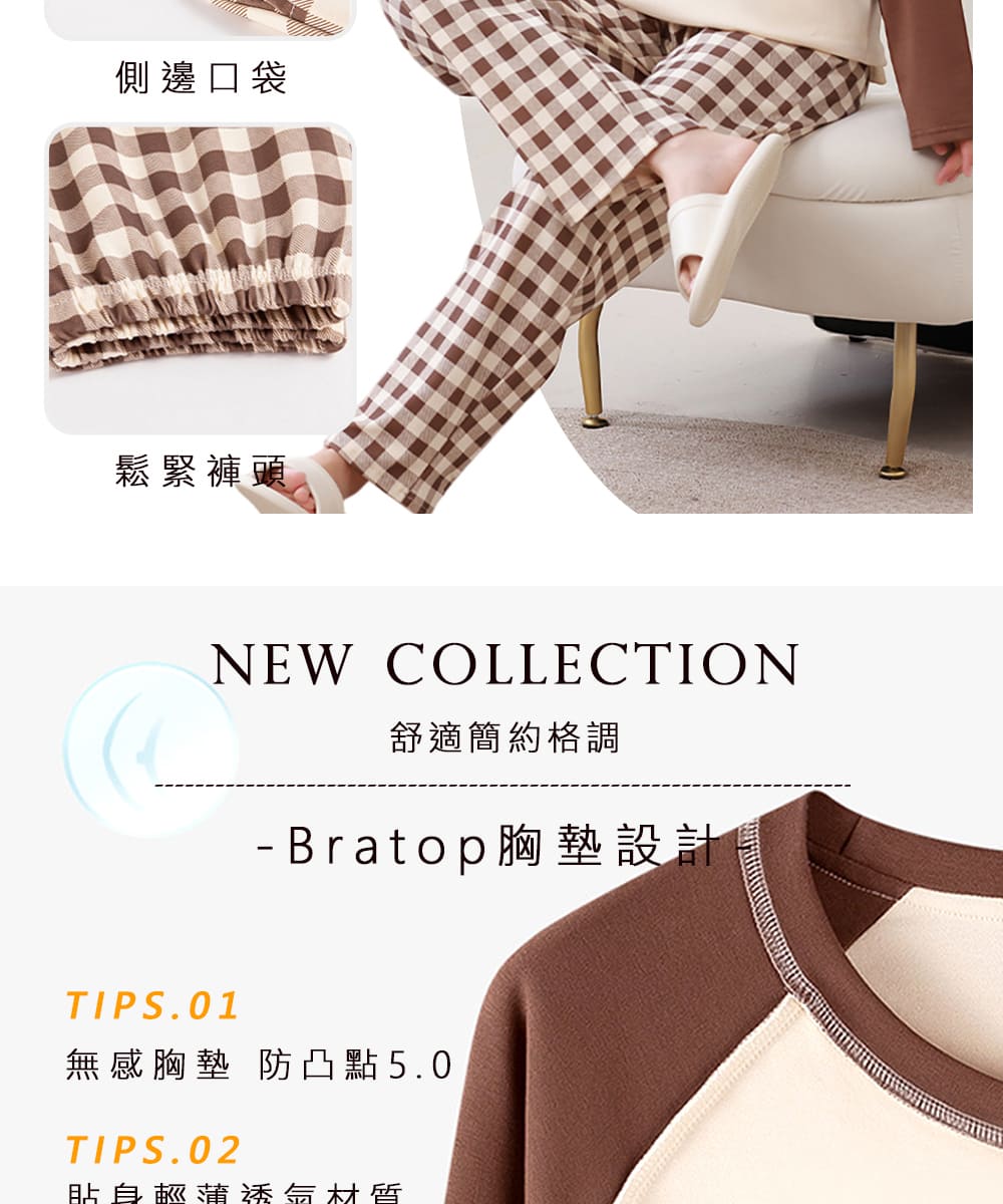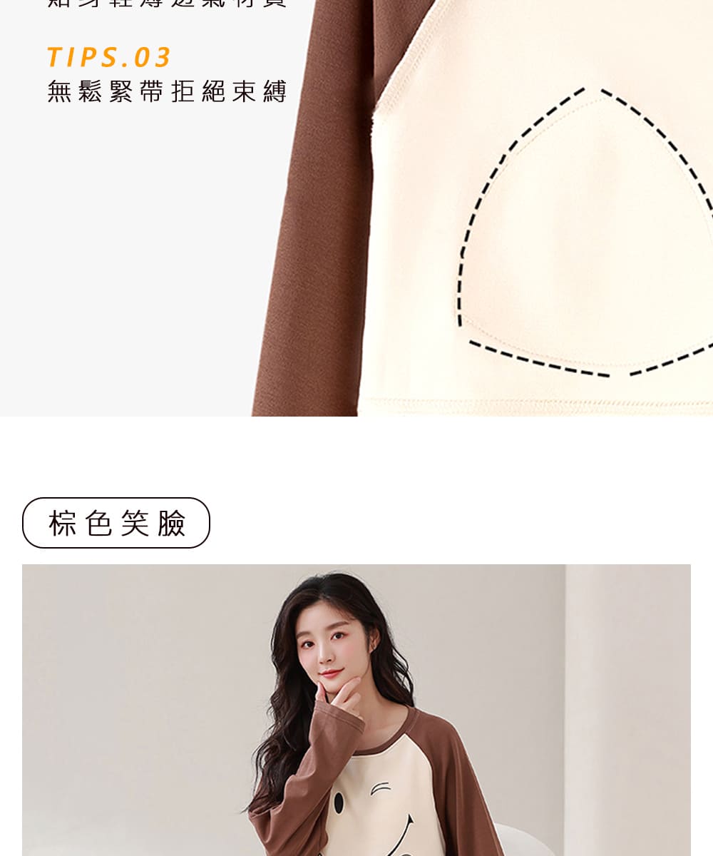 【Kosmiya】1套 帶胸墊 棉質慵懶柔棉長袖睡衣/女睡衣/居家服/保暖睡衣/睡衣套裝(3色可選/均碼/加大碼)