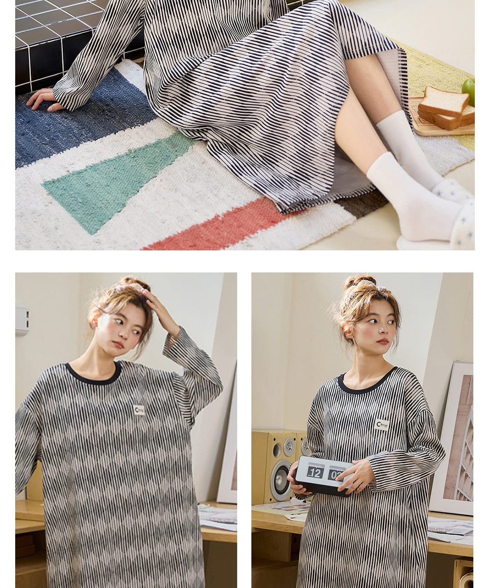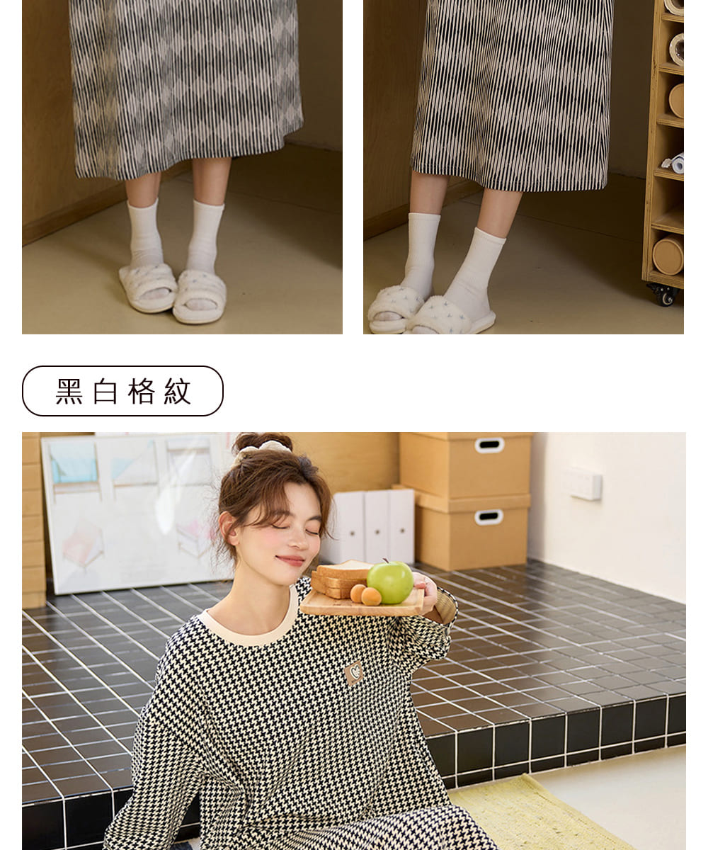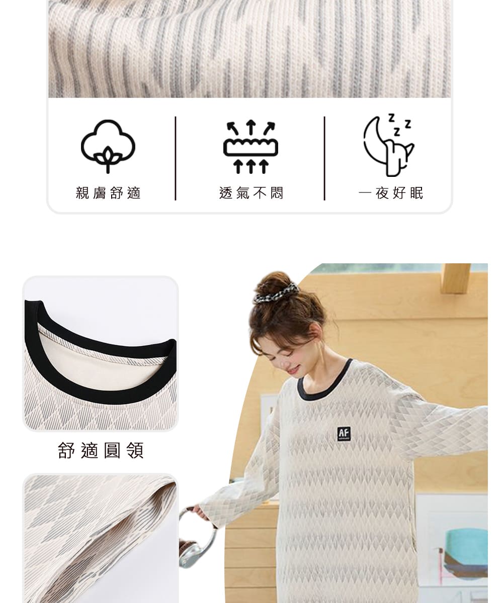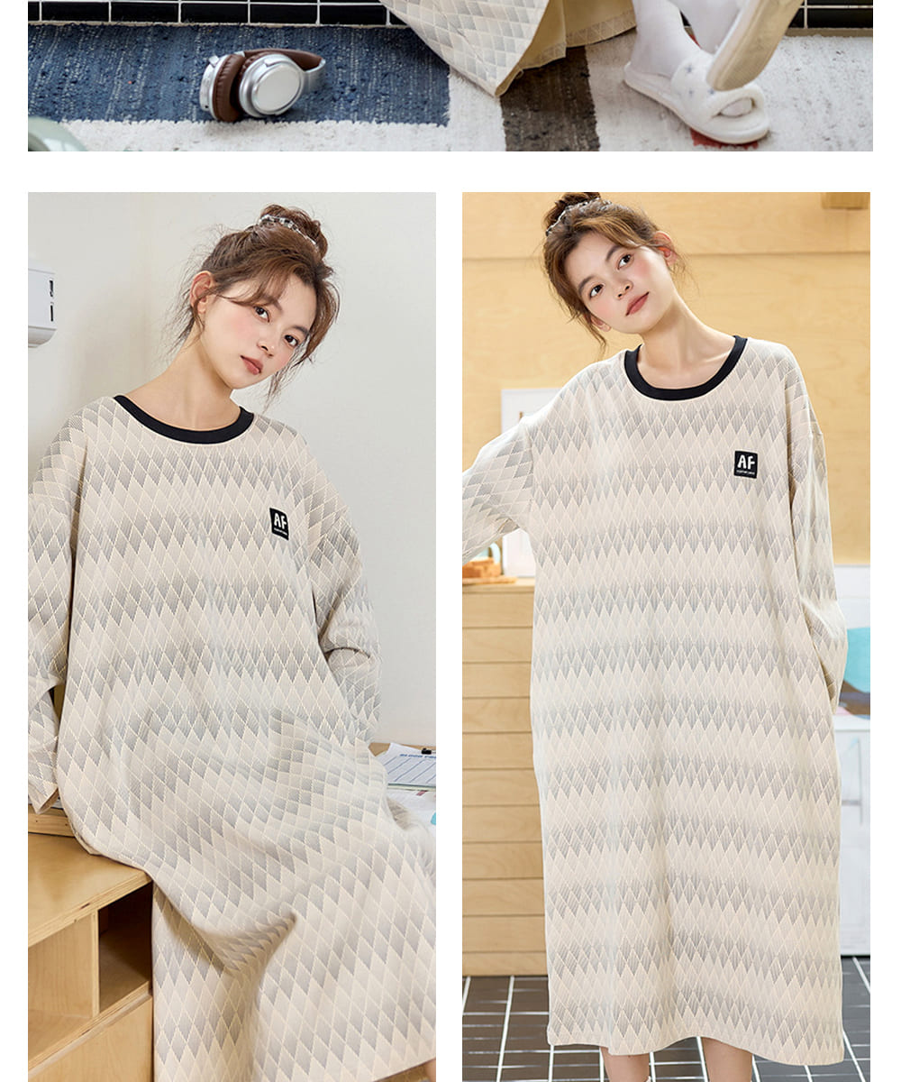 【Kosmiya】 1套 帶胸墊 棉質日系格紋長袖睡裙/女睡衣/保暖睡衣/長袖睡衣/連身洋裝/洋裝(3色/均碼/加大碼)