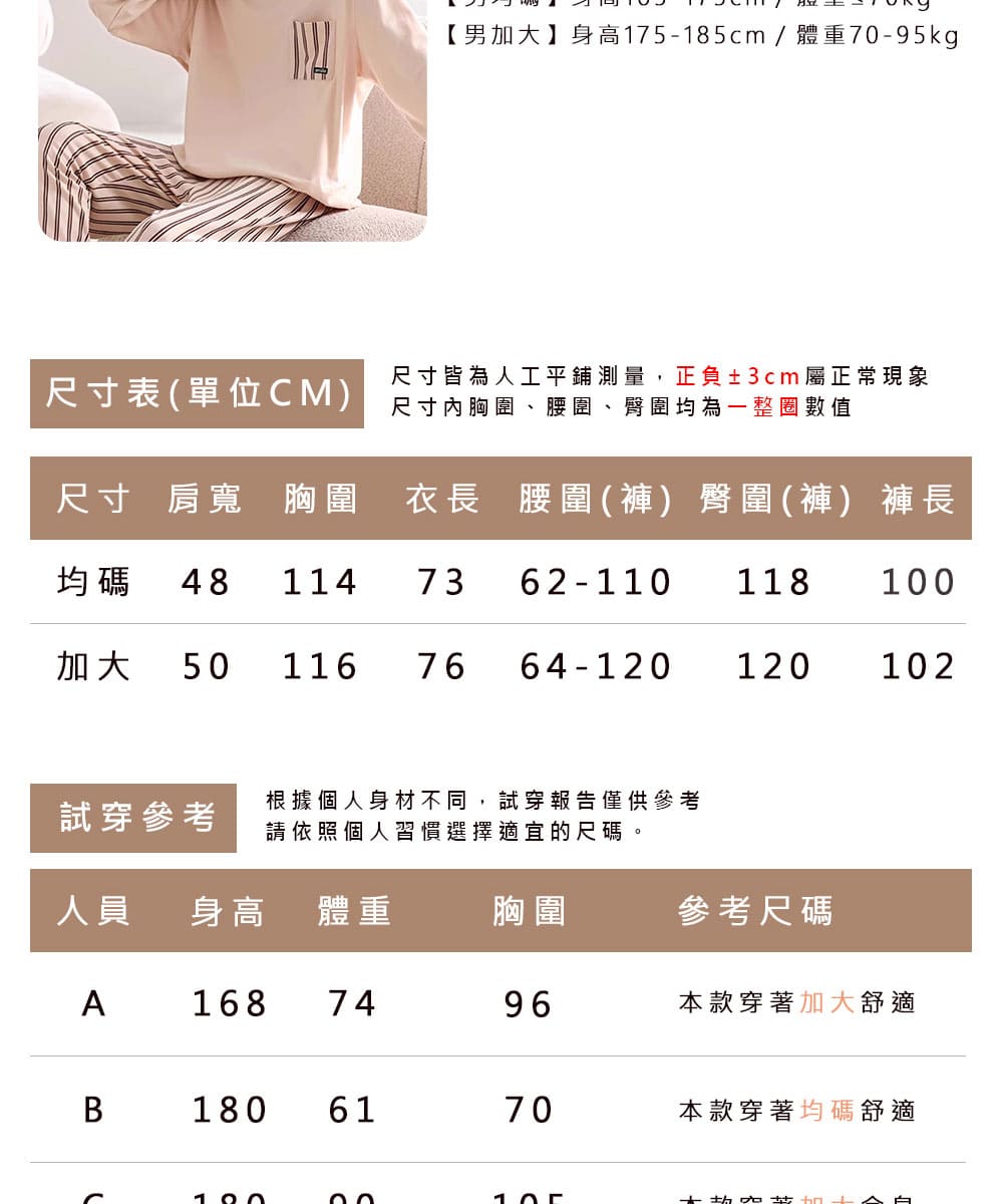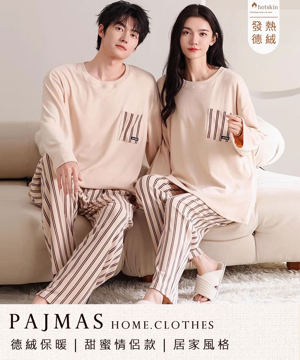 【Kosmiya】1套 情侶款 保暖德絨 暖心情人長袖睡衣/女睡衣/男睡衣/居家服/保暖睡衣/睡衣套裝(均碼/加大碼)