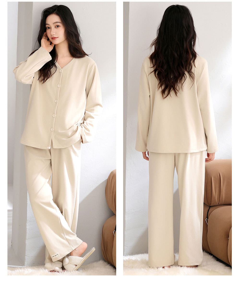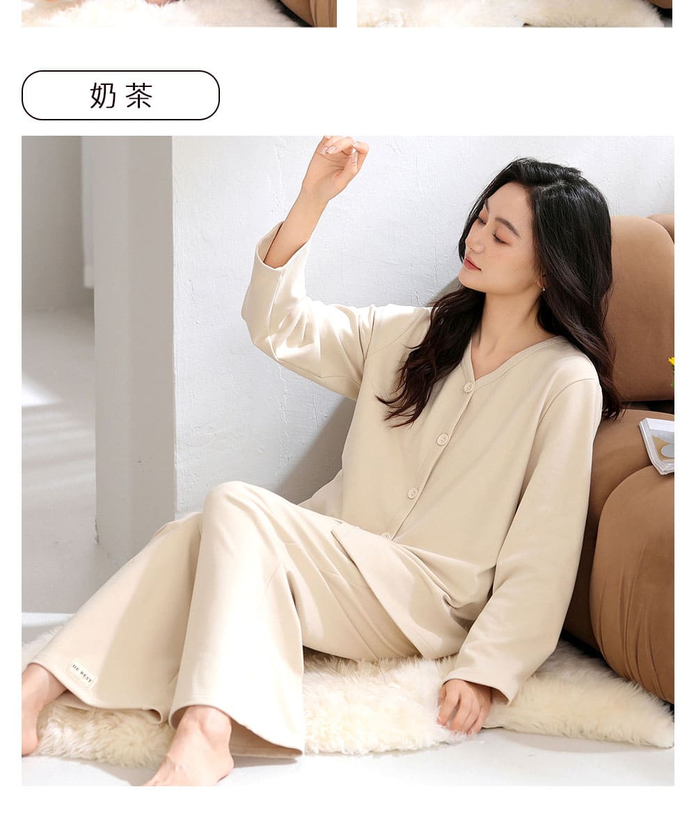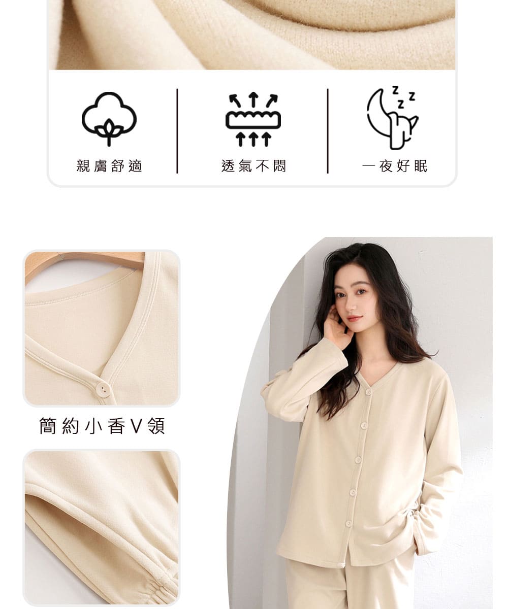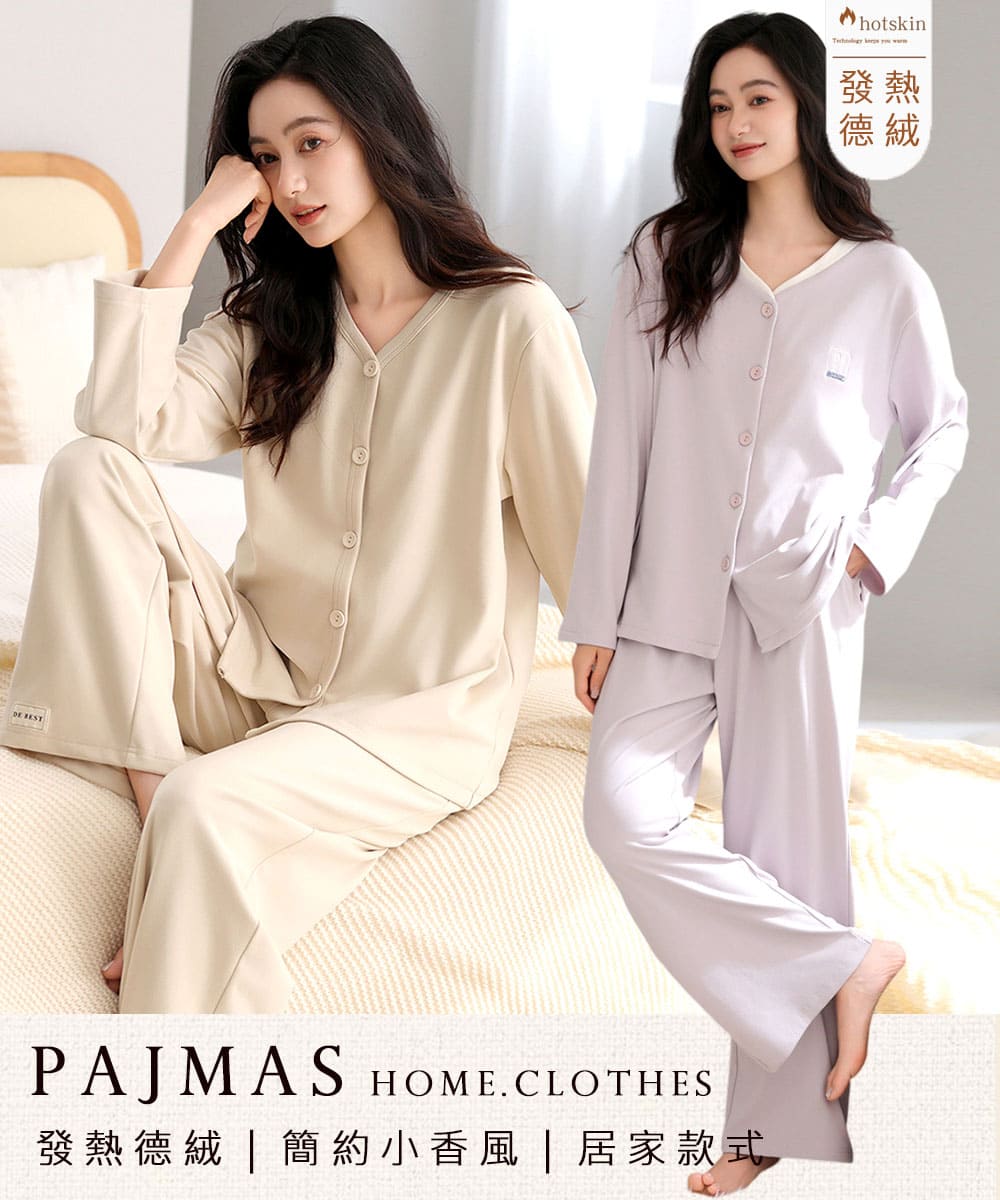 【Kosmiya】1套 帶胸墊 德絨保暖甜美小香長袖睡衣/女睡衣/居家服/保暖睡衣/睡衣套裝(4色可選/均碼/加大碼)