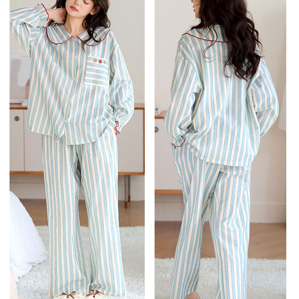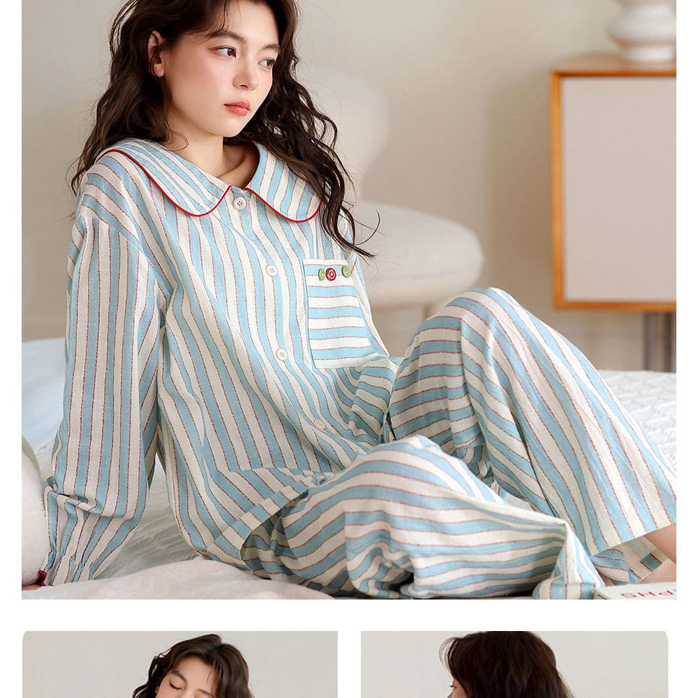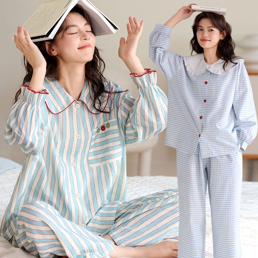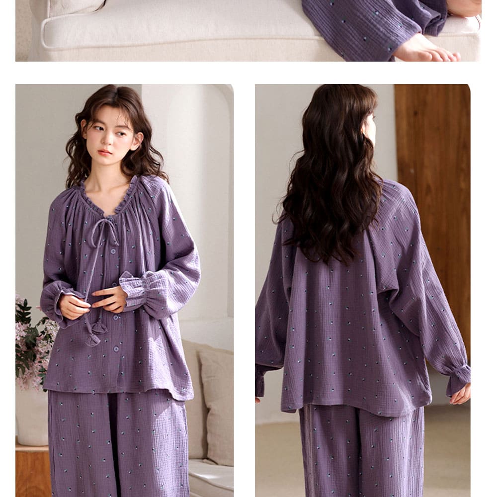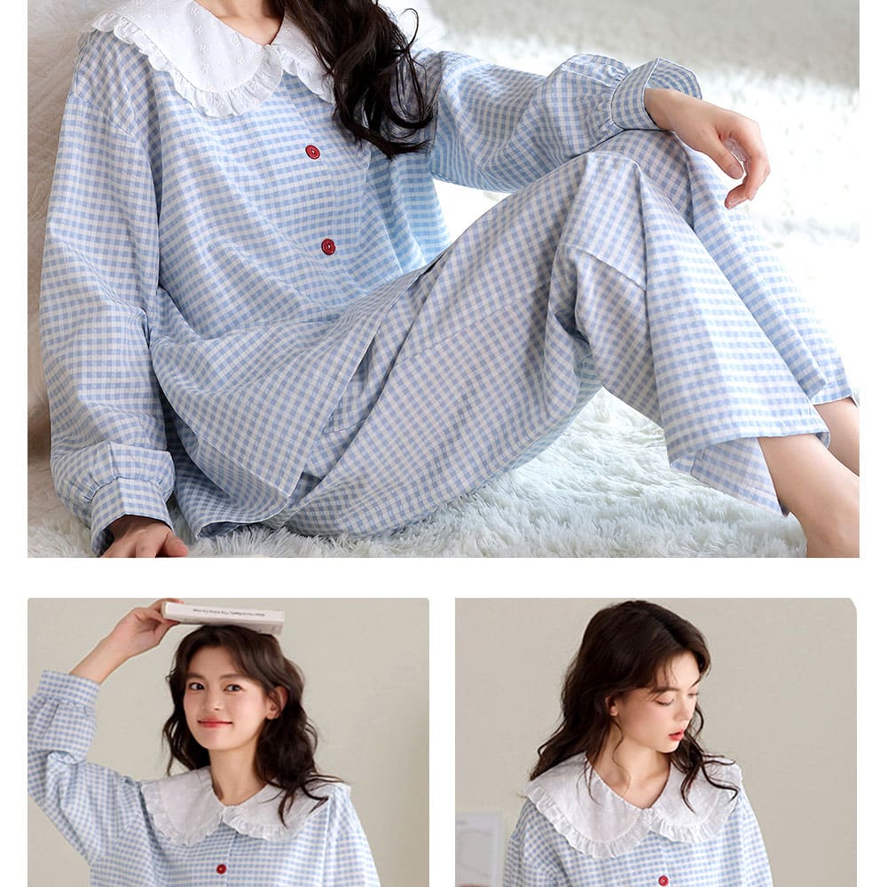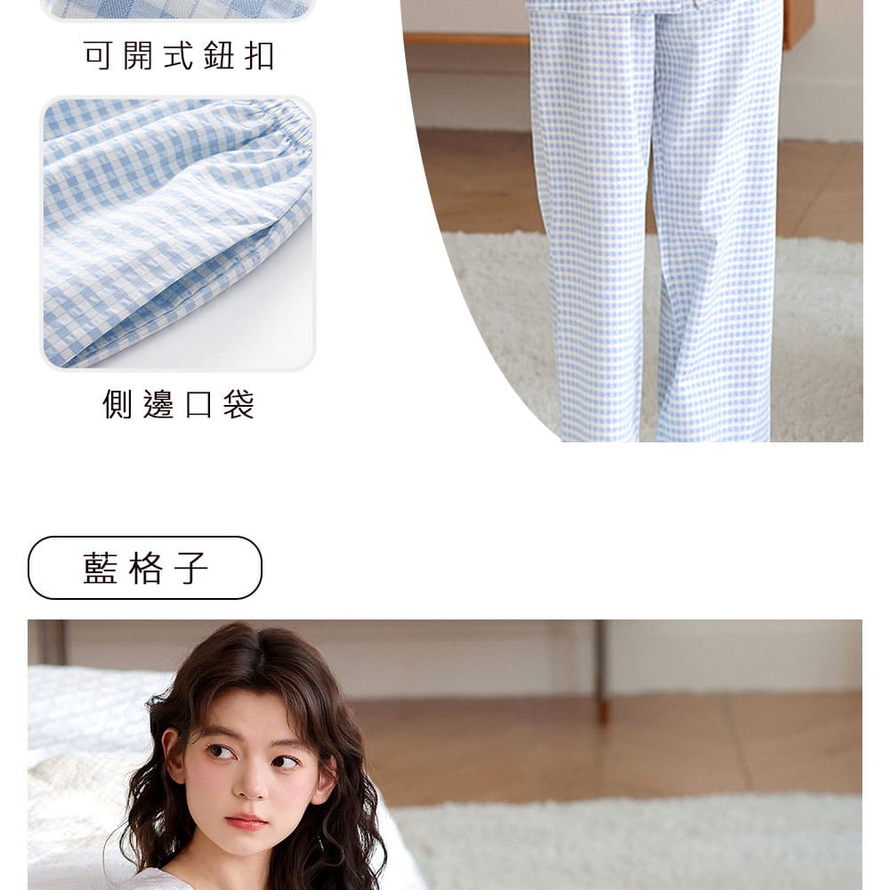 【Kosmiya】1套 帶胸墊 棉質 浪漫方領短袖睡衣/女睡衣/居家服/涼感睡衣/睡衣套裝(2色可選/均碼/加大碼)