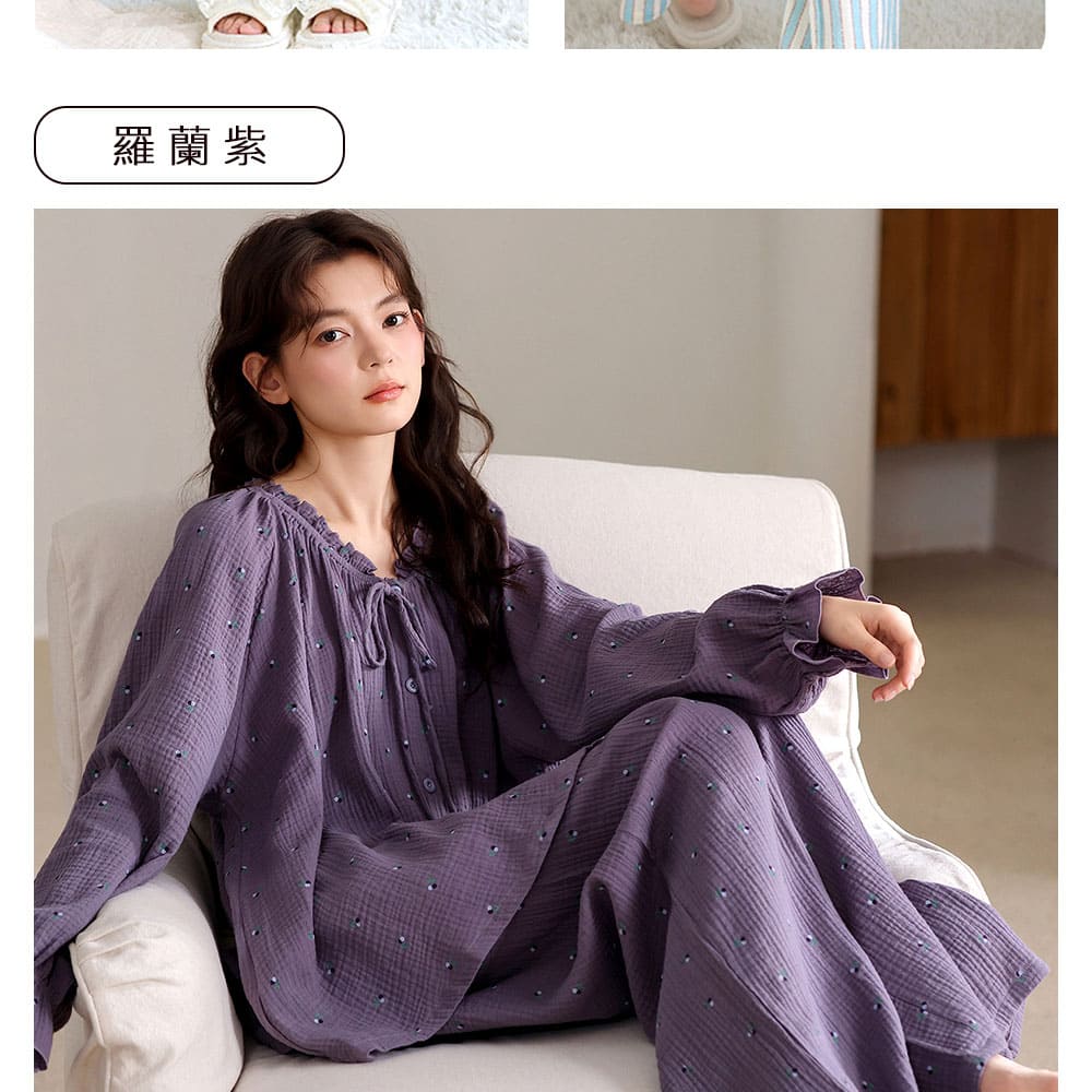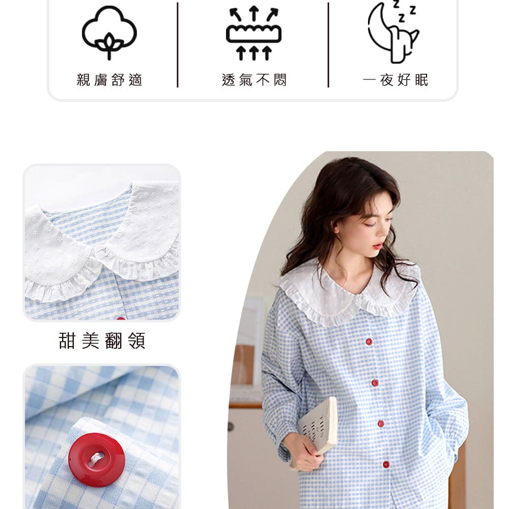 【Kosmiya】1套 雙層嬰兒紗 俏皮公主長袖睡裙/女睡衣/保暖睡衣/長袖睡衣/連身洋裝/洋裝(3色/均碼/加大碼)