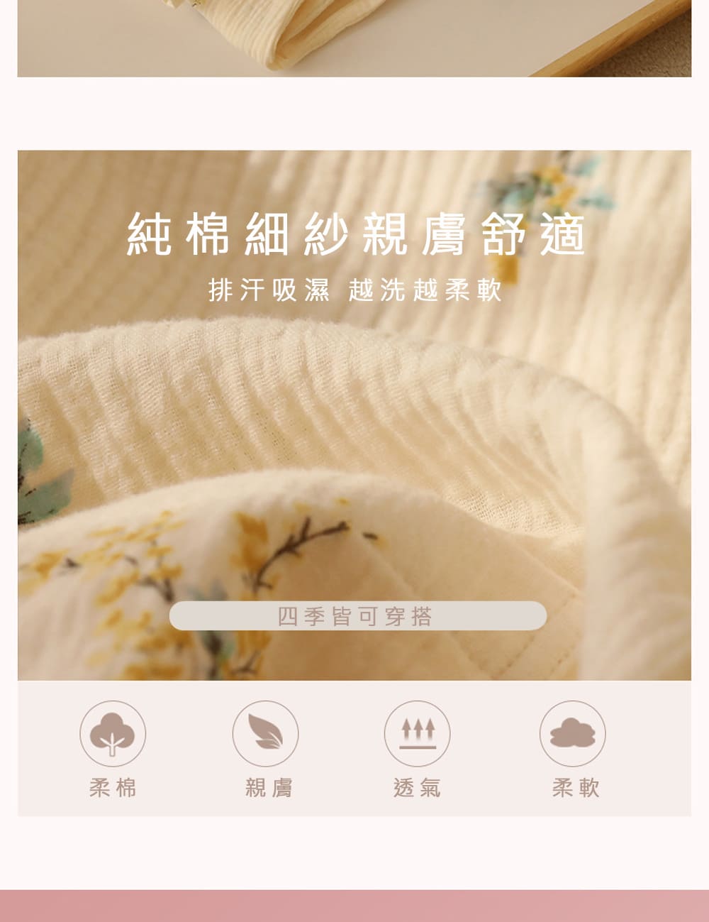 縐紗材質,貼膚滑順不悶熱