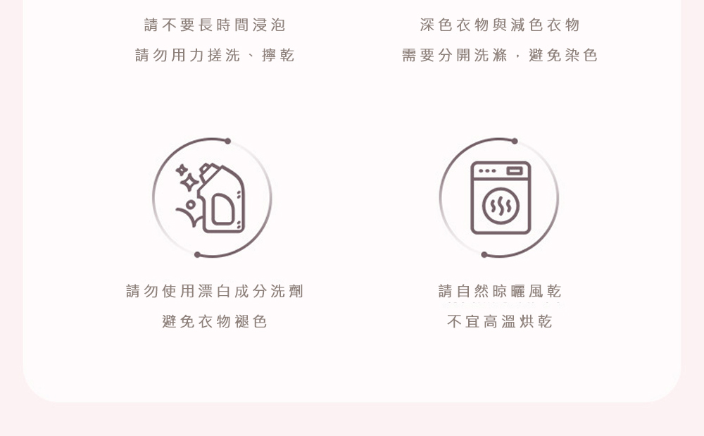 ▲商品第一次穿戴前,深淺色請分開或單獨洗滌。