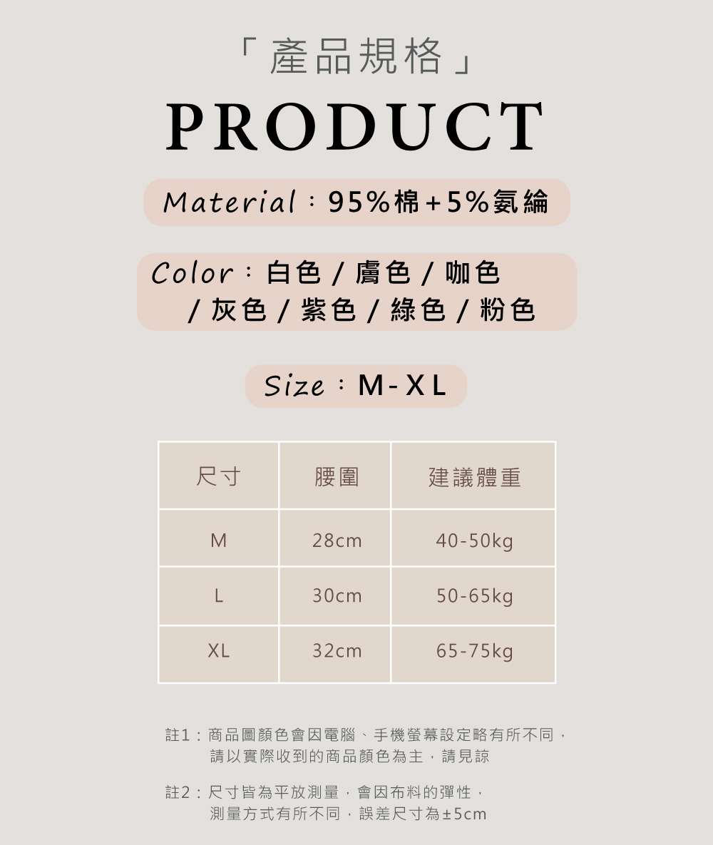 尺碼:M-XL 顏色:7色 材質:面料-95%棉、5%氨綸 裡料-100%棉