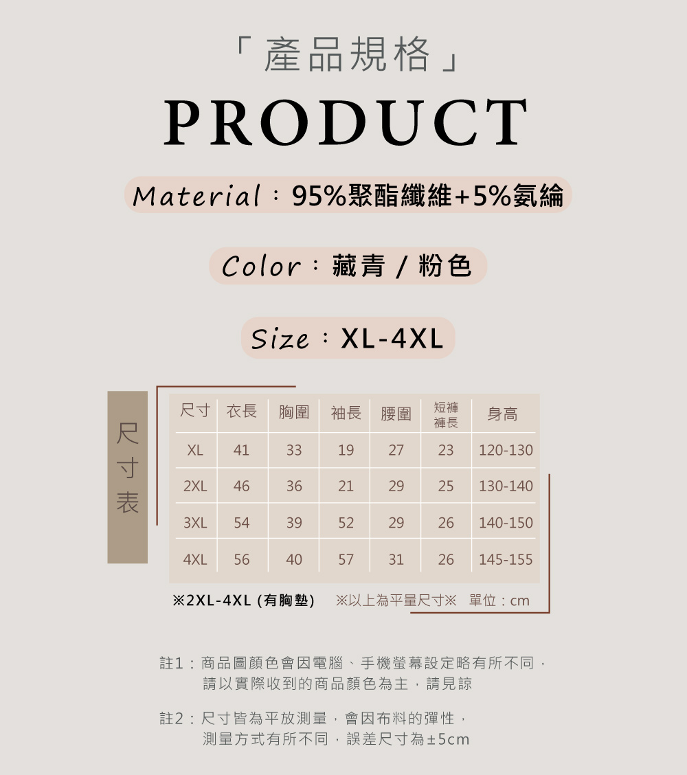 面料:95%聚酯纖維+5%氨綸 尺寸:XL-4XL 款式:藏青/粉色