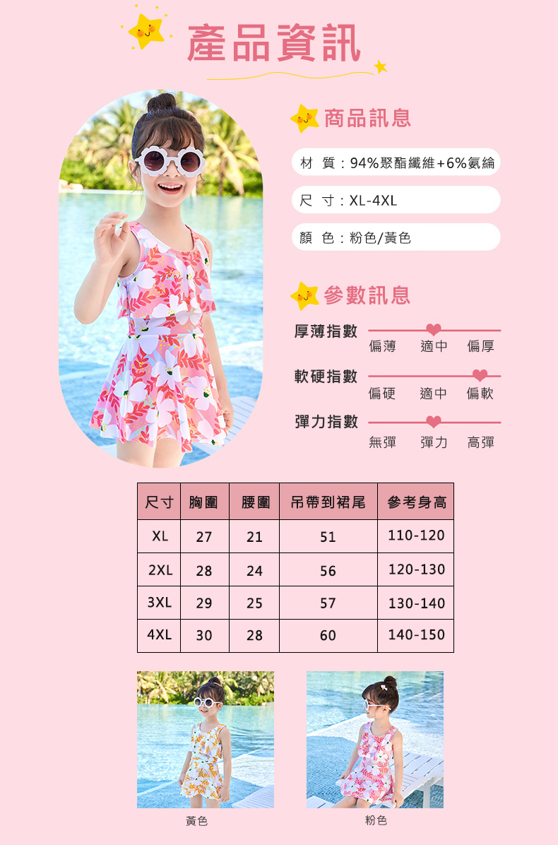 面料:94%聚酯纖維+6%氨綸 尺寸:XL-4XL (均無附胸墊) 顏色:粉色/黃色